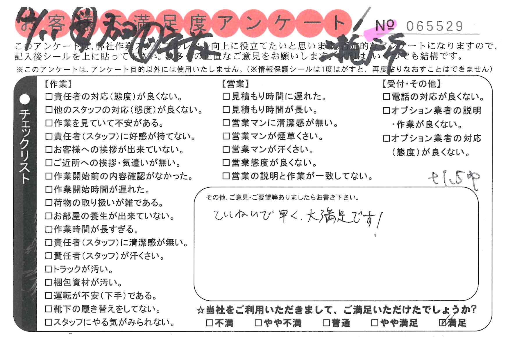 * ていねいで早く、大満足です!