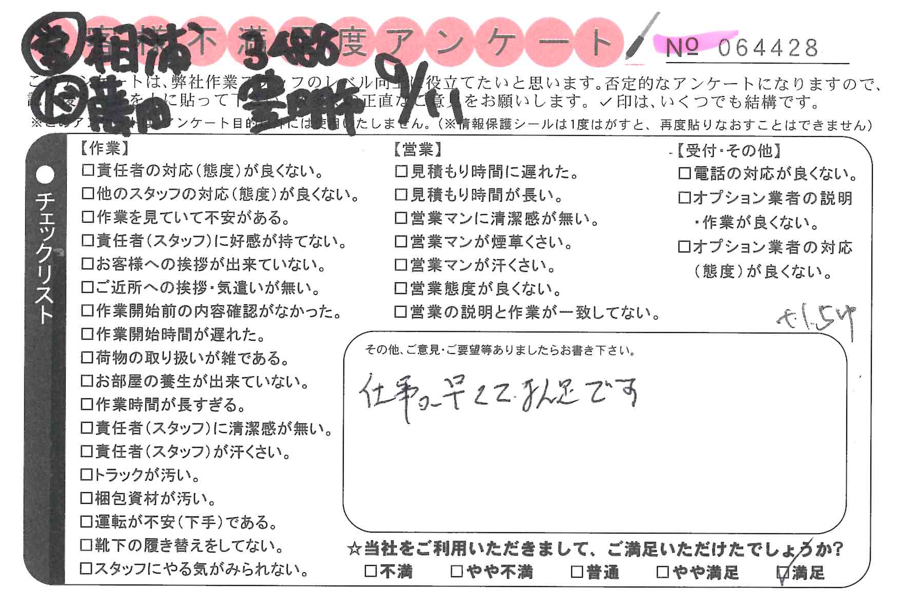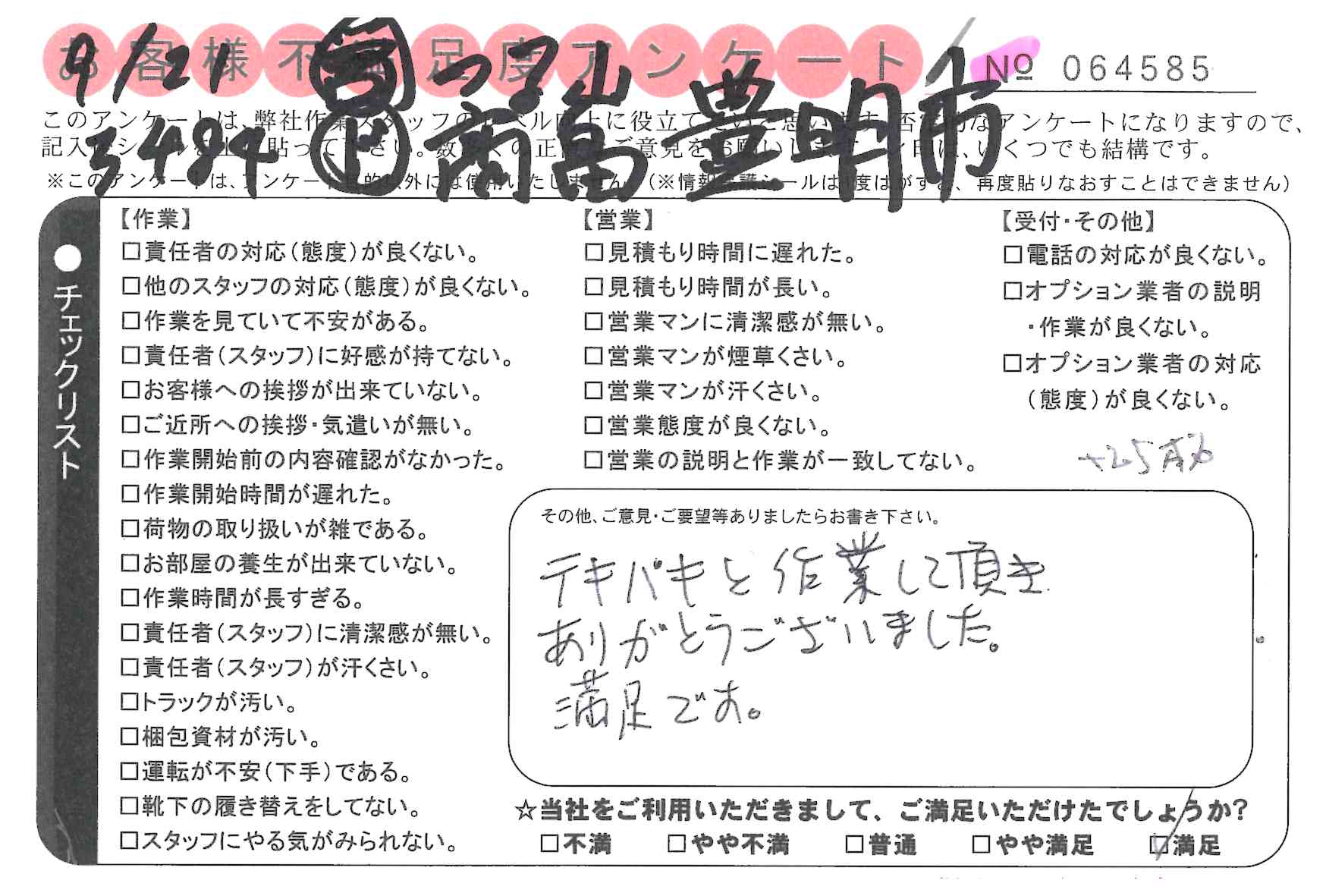 引越一番でお引越しをしていただいたお客様のうち、コメントいただいたアンケートを全て掲載しています。