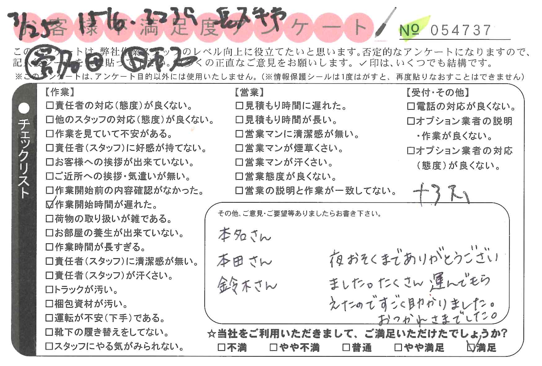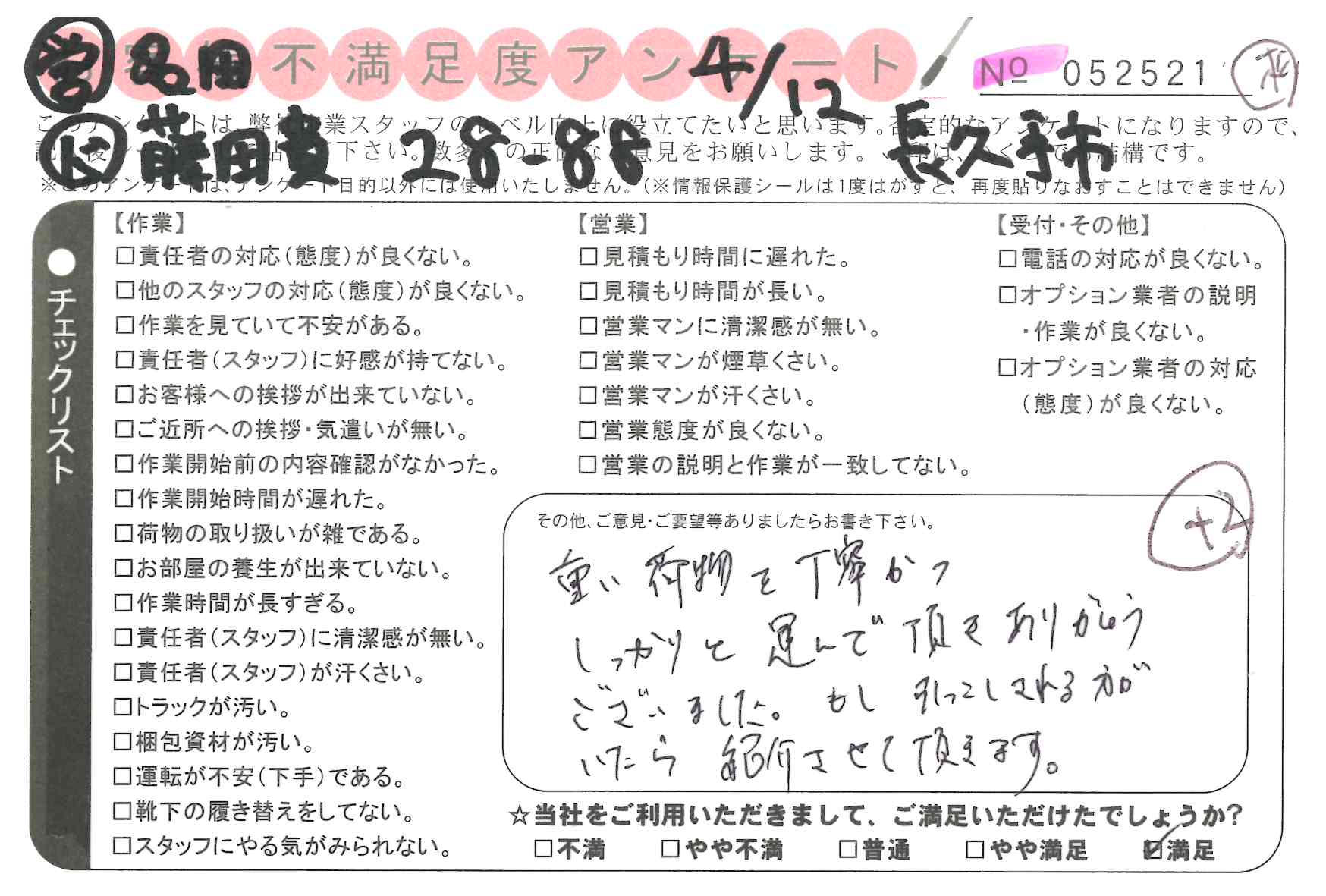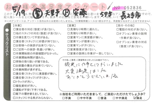 引越一番でお引越しをしていただいたお客様のうち、コメントいただいたアンケートを全て掲載しています。