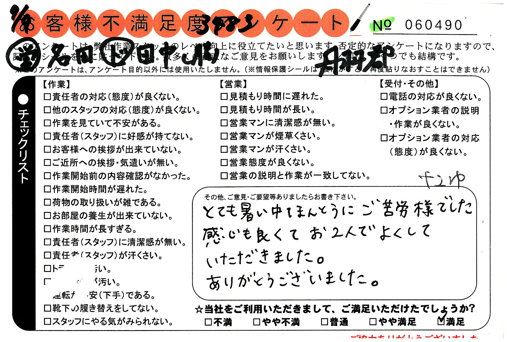 引越一番でお引越しをしていただいたお客様のうち、コメントいただいたアンケートを全て掲載しています。