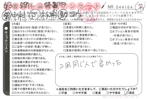 引越一番でお引越しをしていただいたお客様のうち、コメントいただいたアンケートを全て掲載しています。