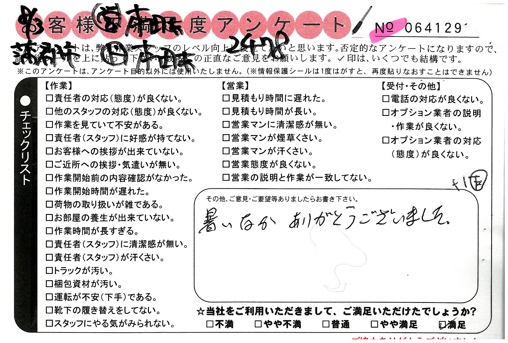 * 作業員の方はとても良くしていただけました