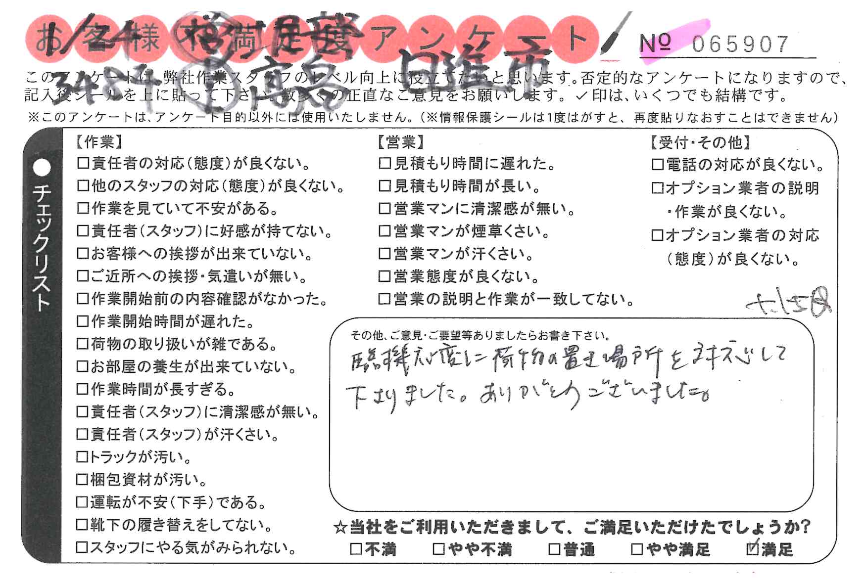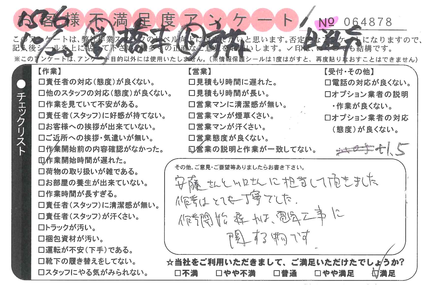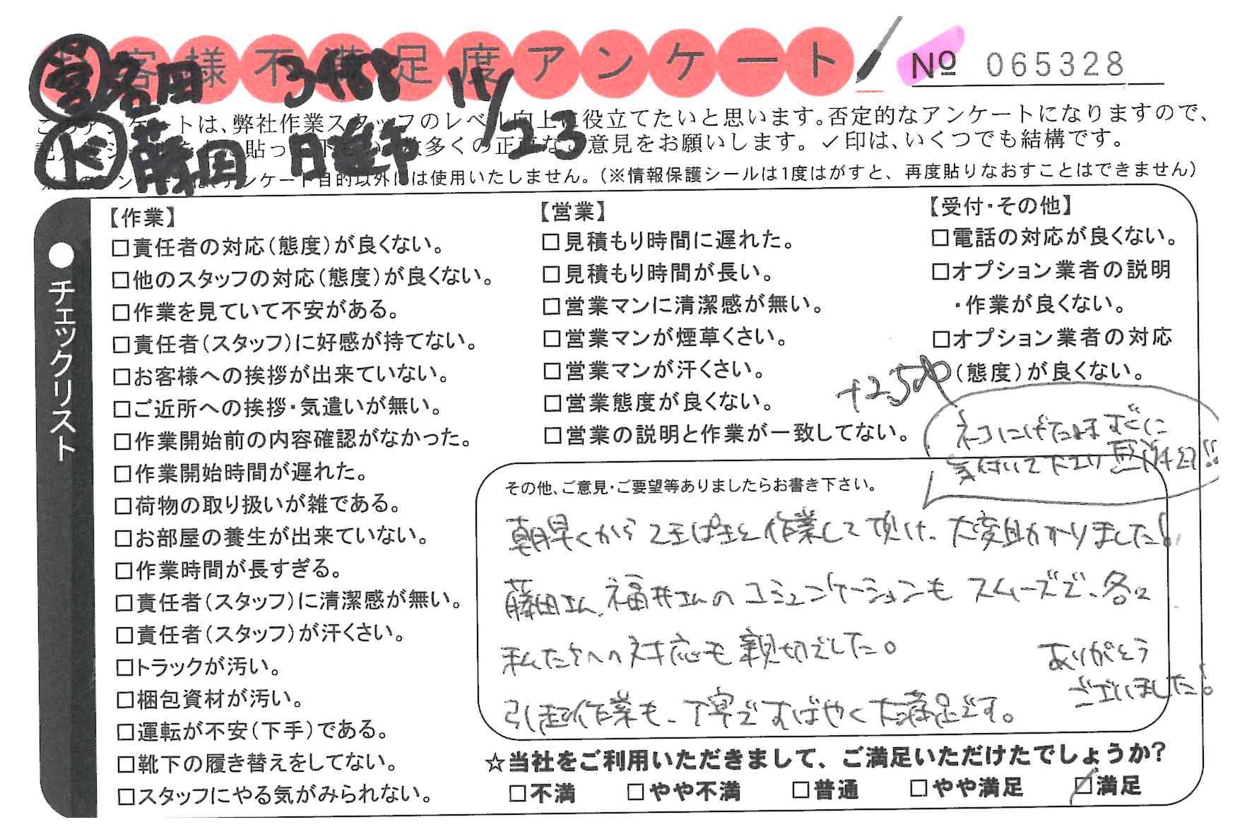 引越一番でお引越しをしていただいたお客様のうち、コメントいただいたアンケートを全て掲載しています。