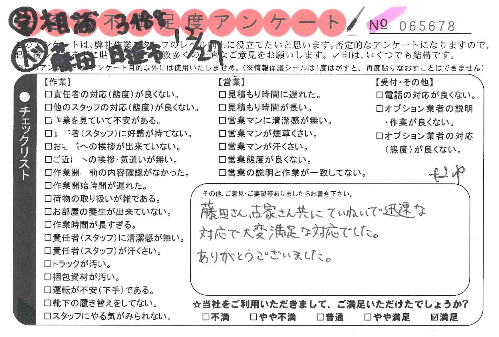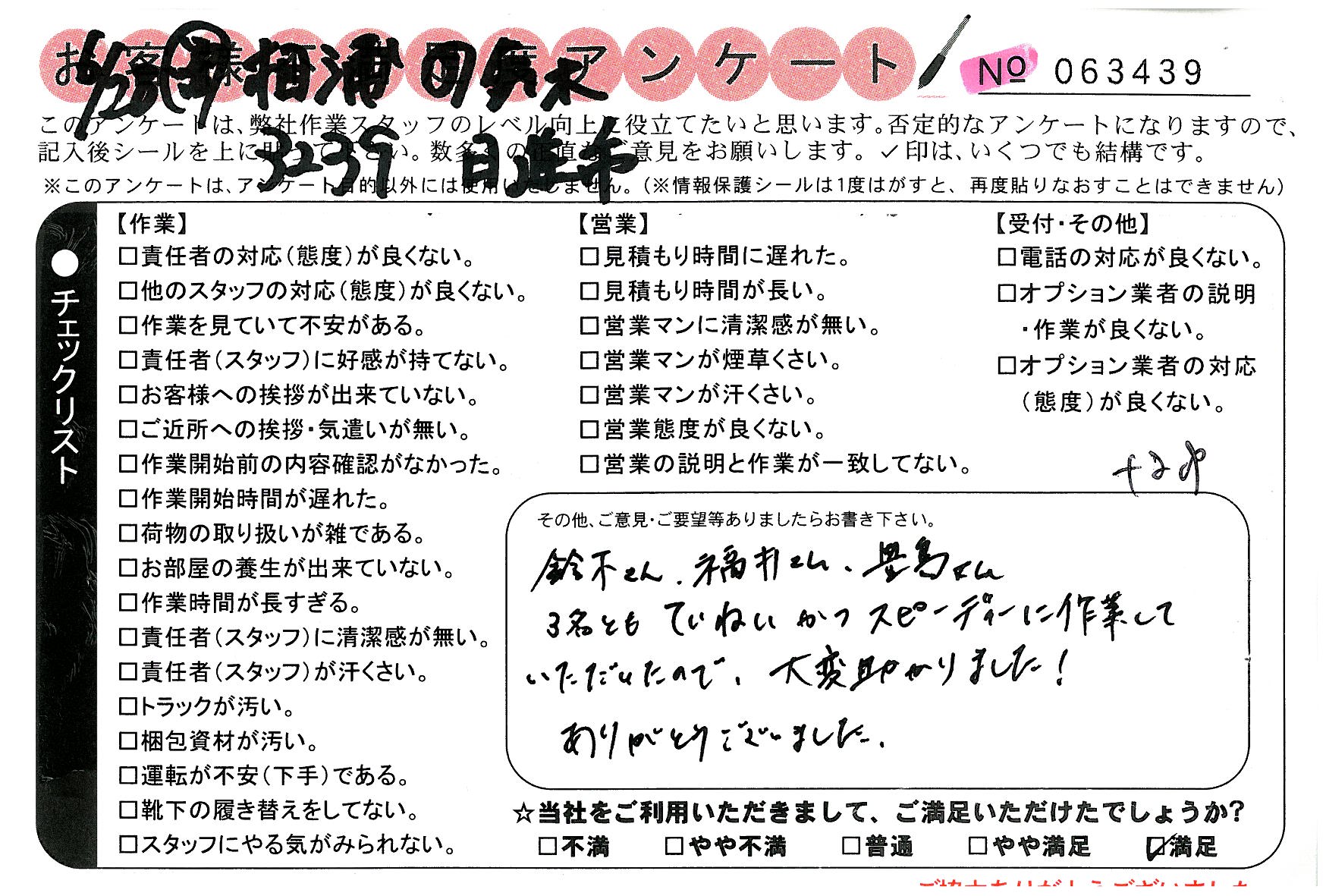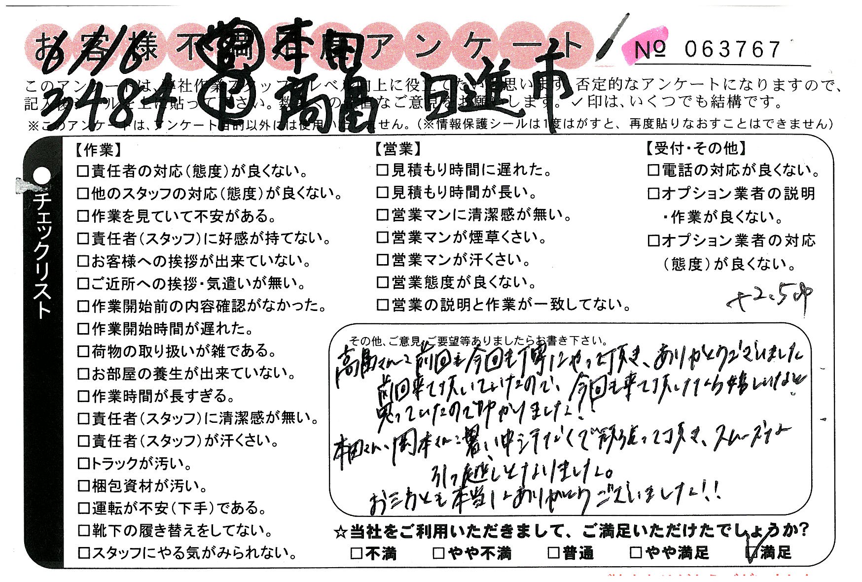 引越一番でお引越しをしていただいたお客様のうち、コメントいただいたアンケートを全て掲載しています。