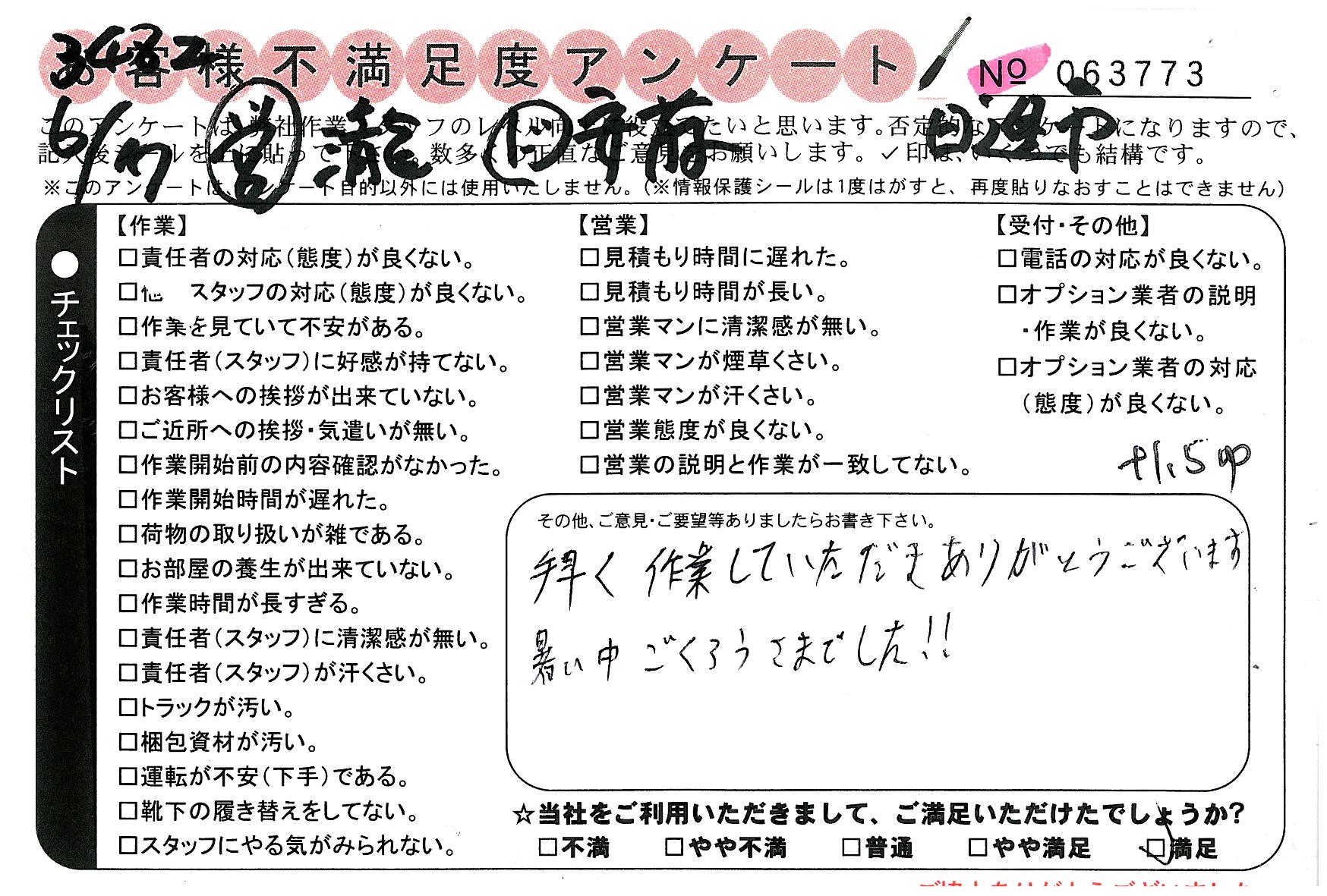 不満足度アンケートを行っている引越一番では、不評なアンケートも、好評なアンケートも全て掲載しています。