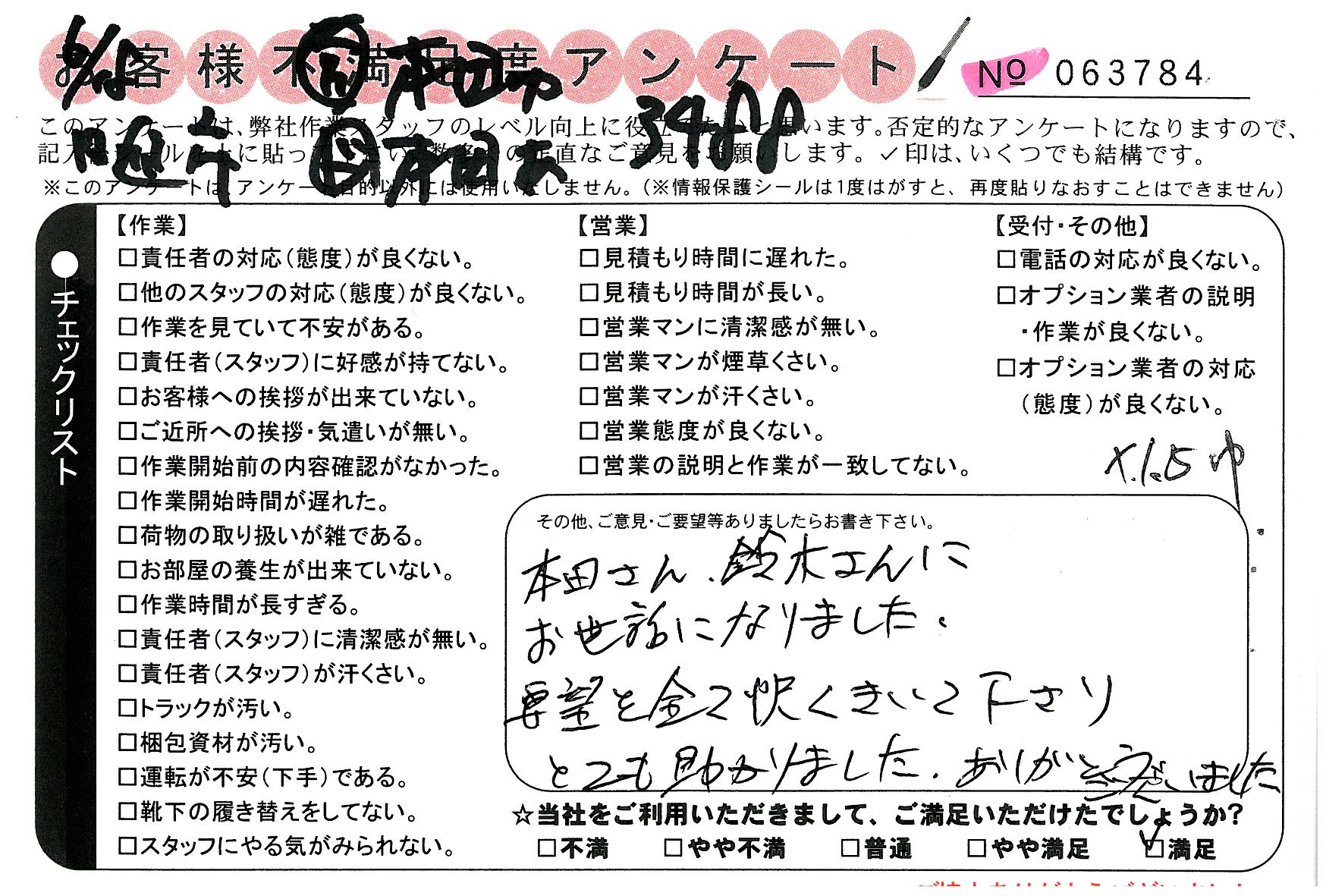 * 前回の対応がよく今回も鈴木さんにお願いしましたが、