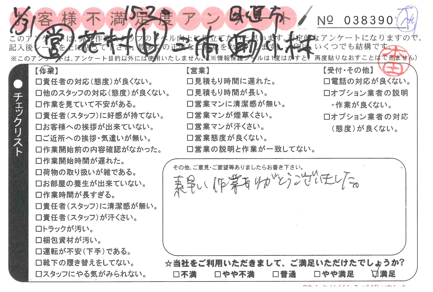 引越一番でお引越しをしていただいたお客様のうち、コメントいただいたアンケートを全て掲載しています。