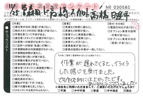 1/4 引越 営業:森田 ドライバー:日原 スタッフ:小野* とても満足です!!ありがとうございました。