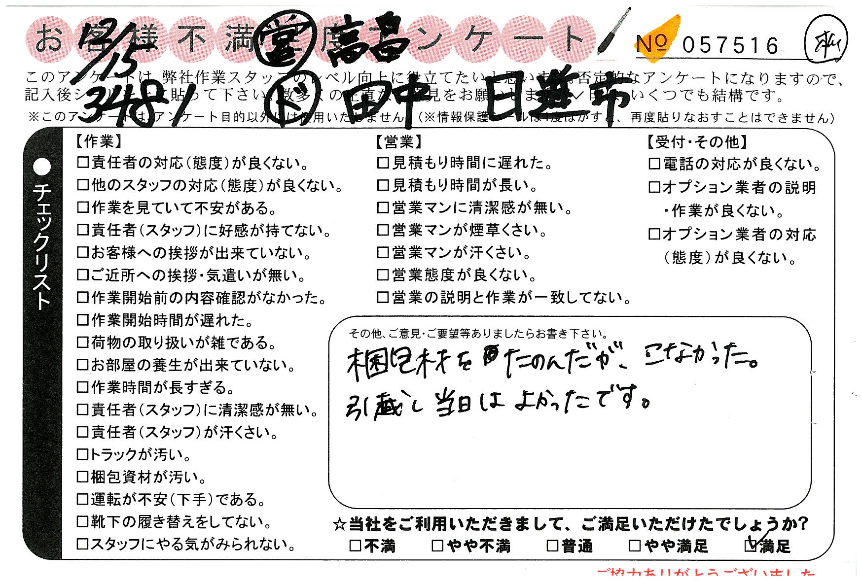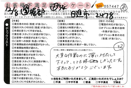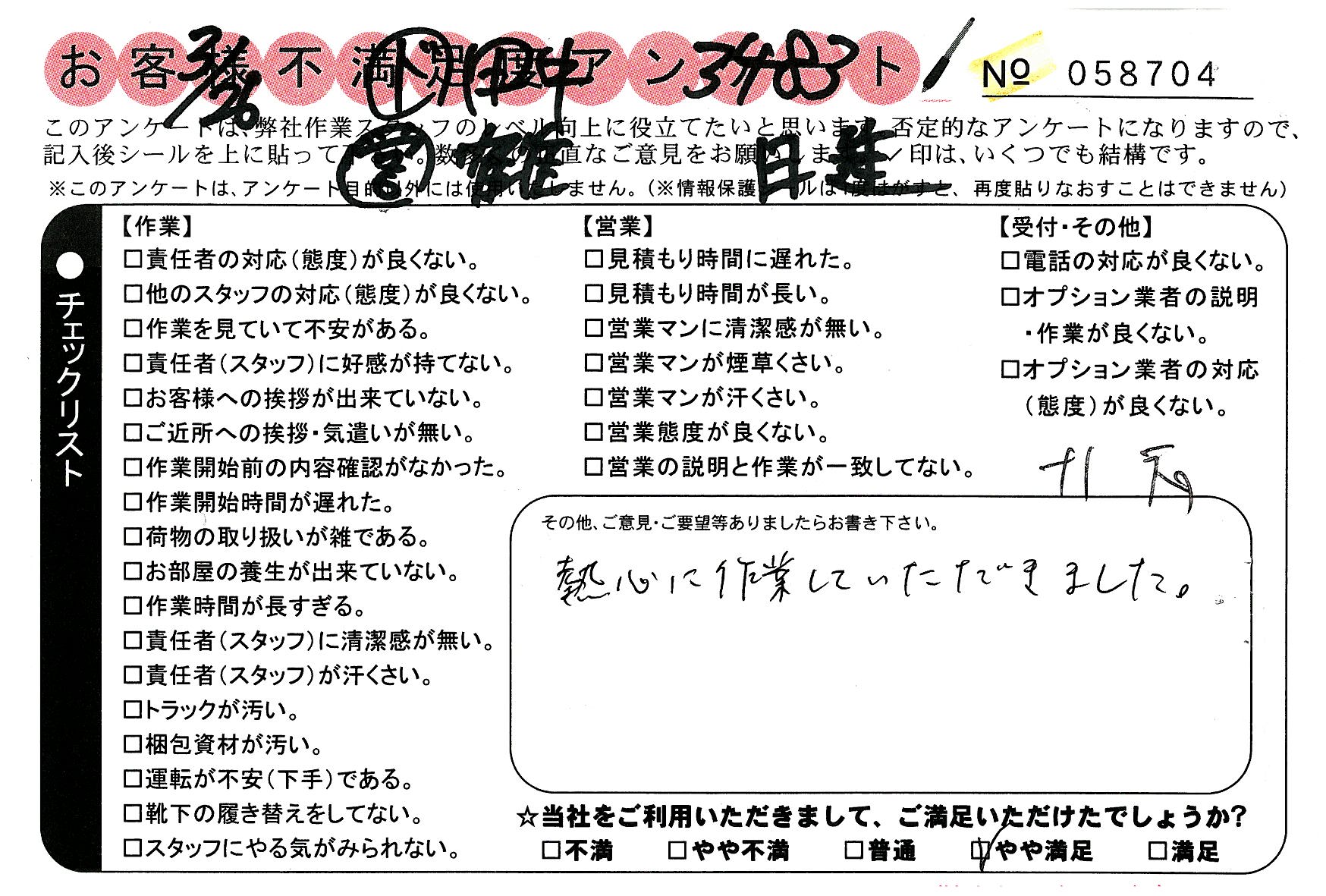引越一番でお引越しをしていただいたお客様のうち、コメントいただいたアンケートを全て掲載しています。