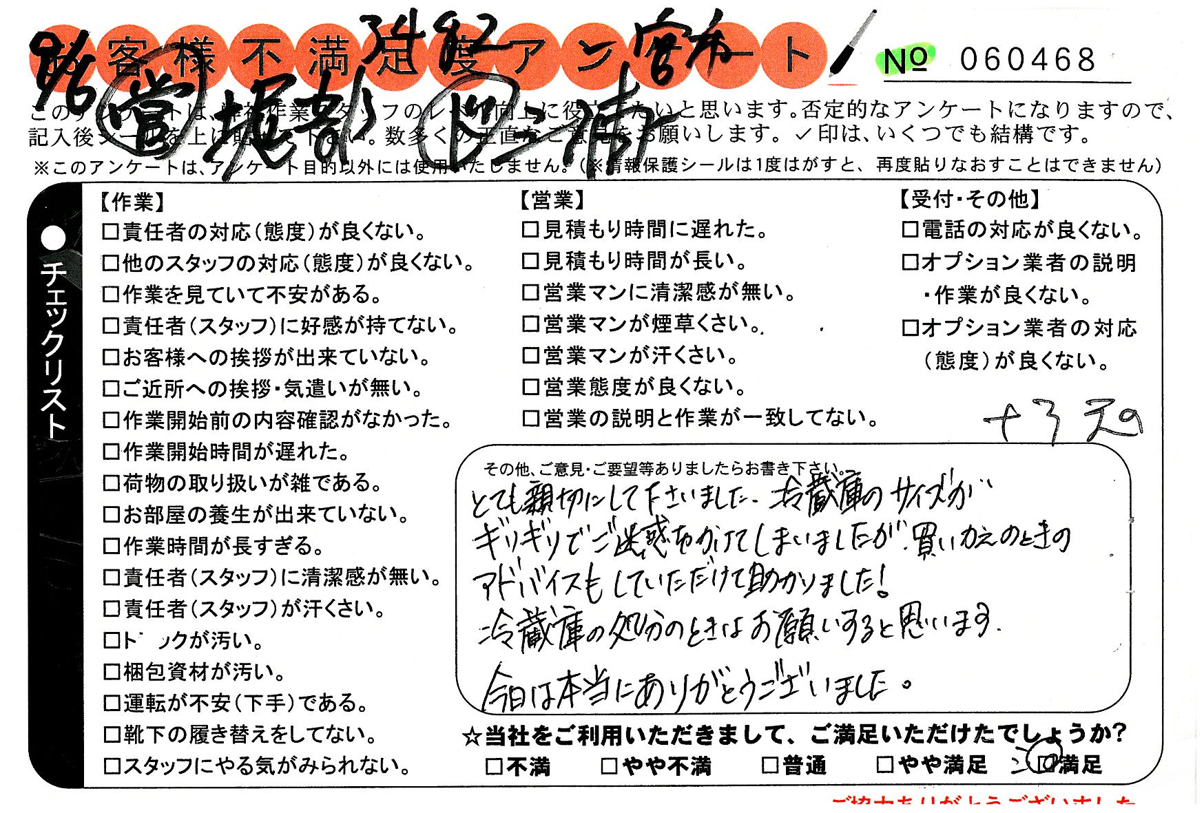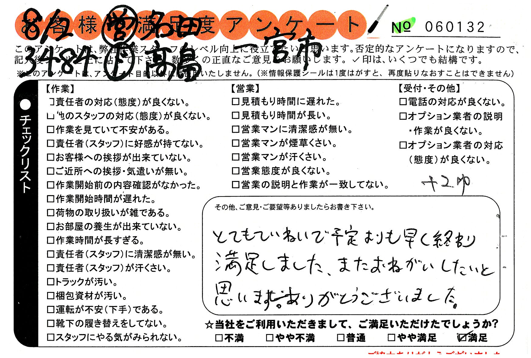 引越一番でお引越しをしていただいたお客様のうち、コメントいただいたアンケートを全て掲載しています。