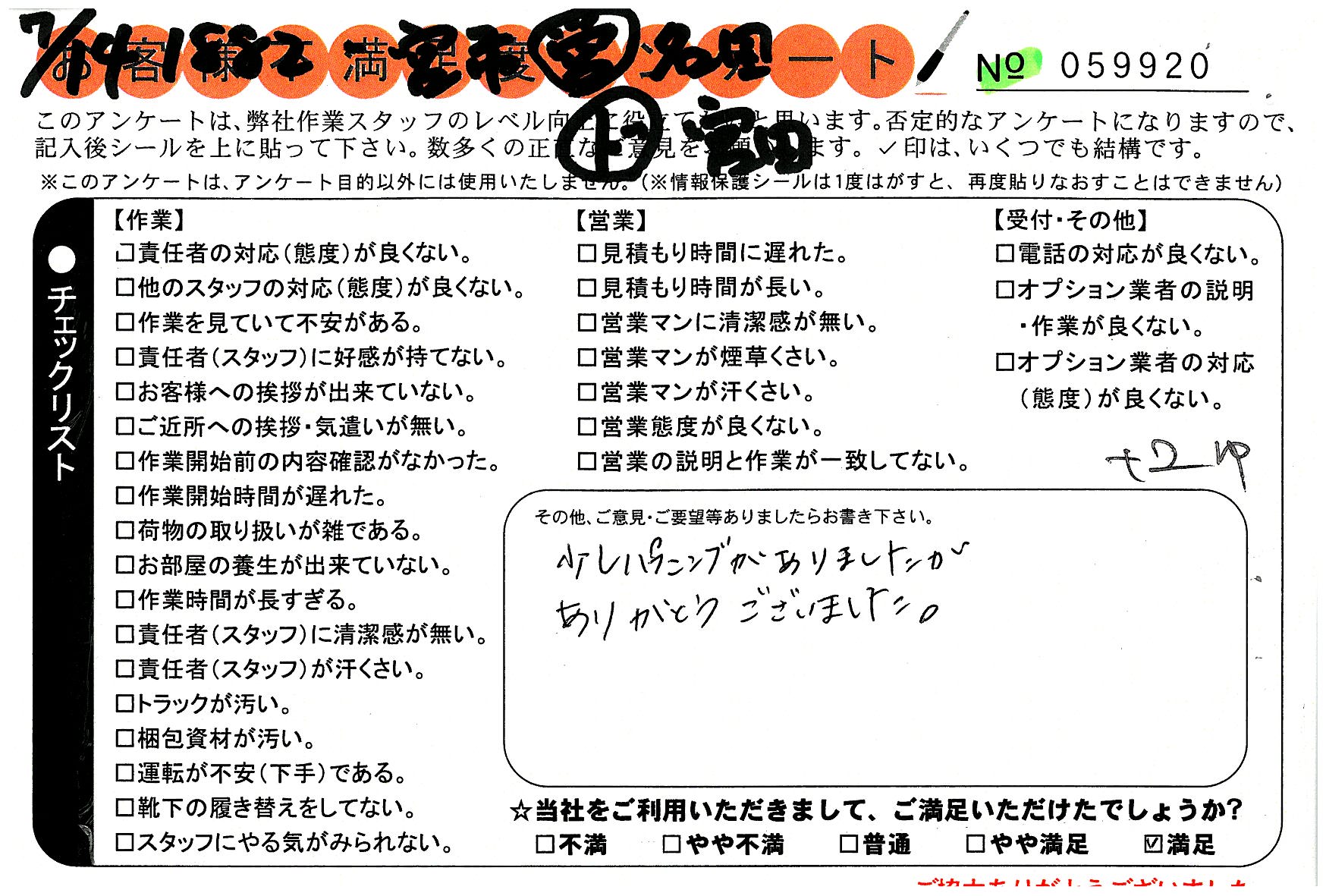 不満足度アンケートを行っている引越一番では、不評なアンケートも、好評なアンケートも全て掲載しています。