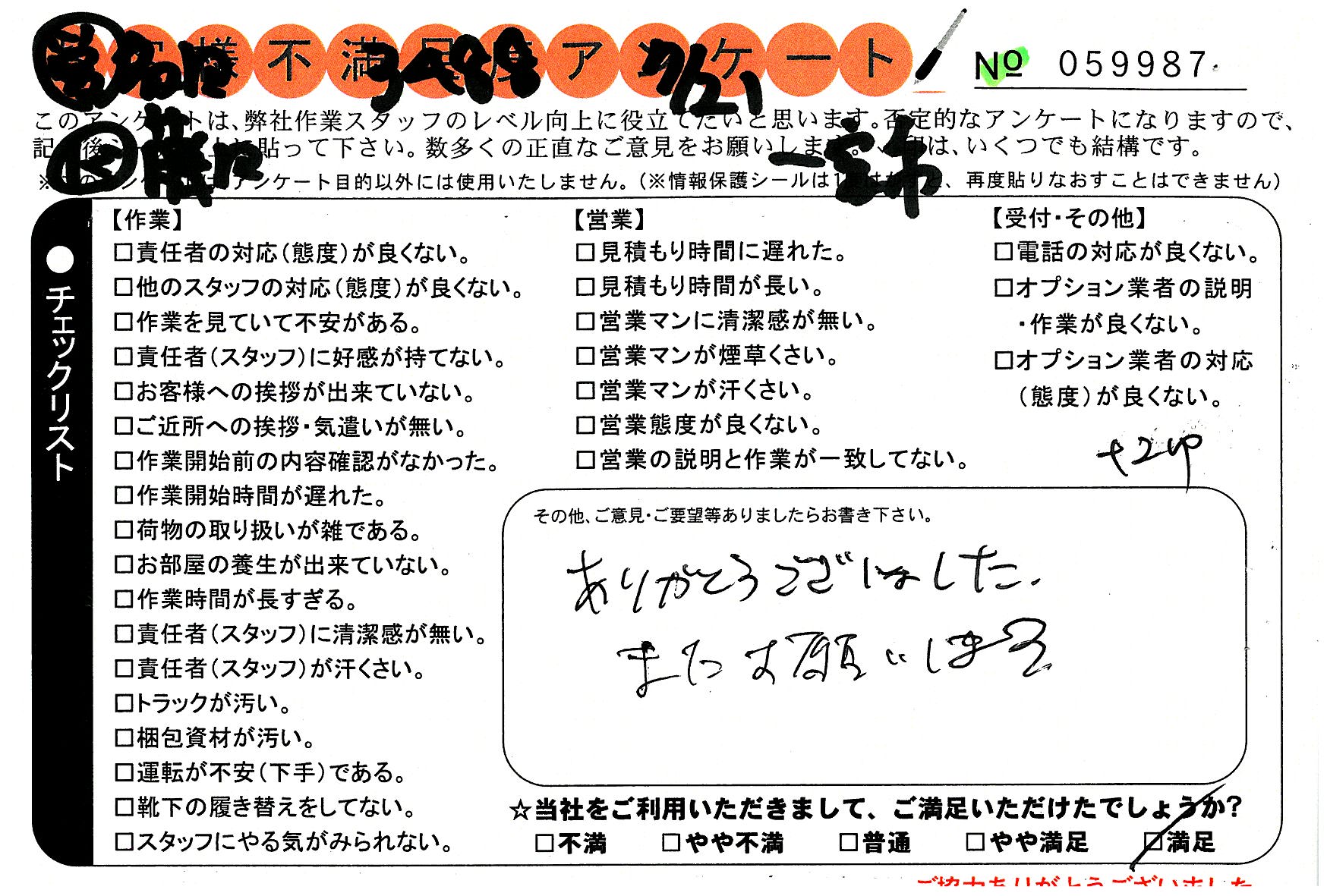 気持ち良く作業していただきありがとうございました