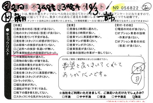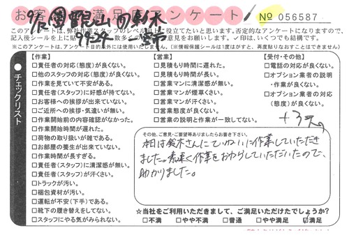 引越一番でお引越しをしていただいたお客様のうち、コメントいただいたアンケートを全て掲載しています。