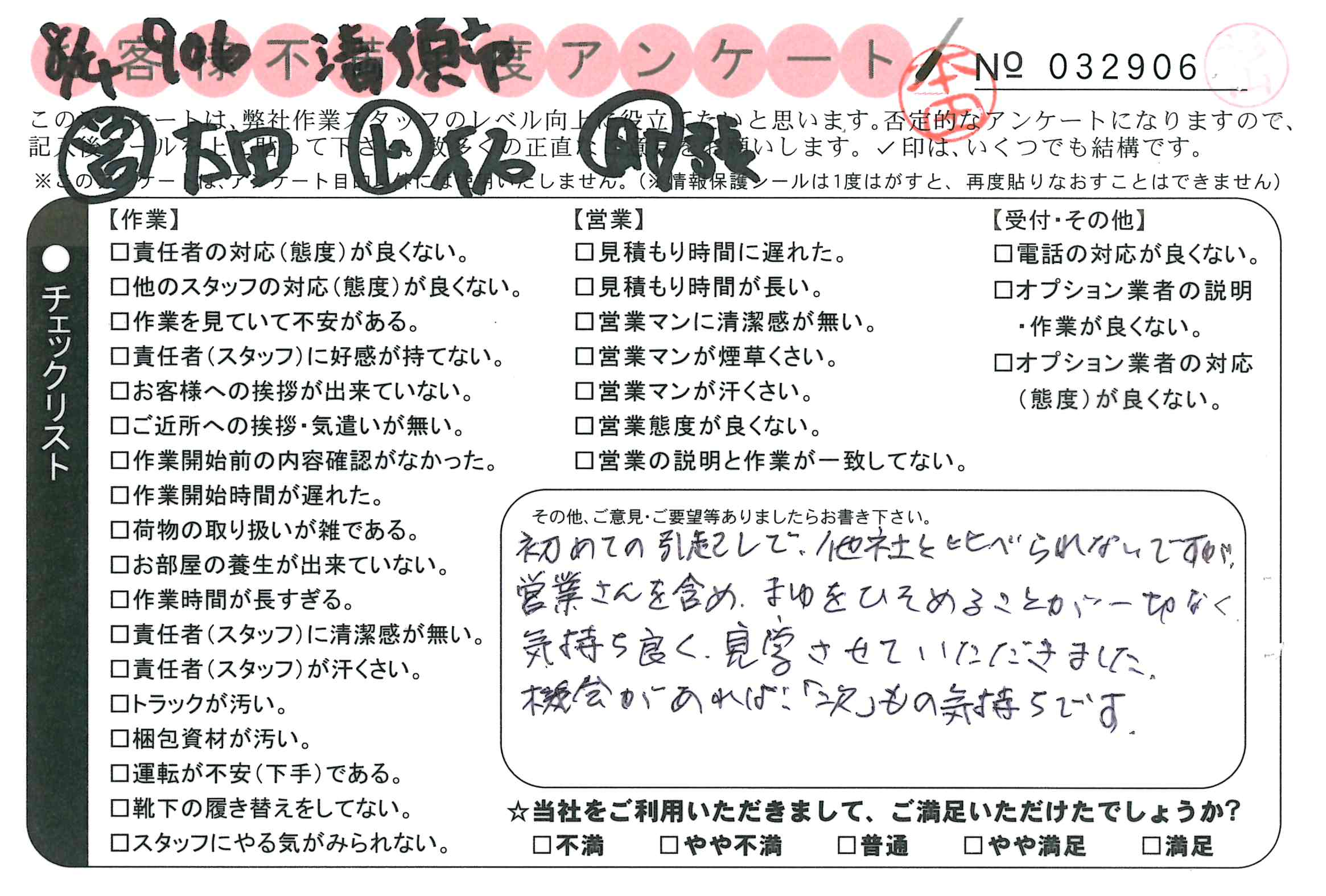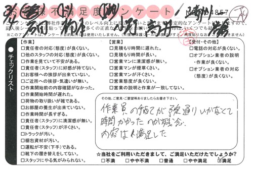 引越一番でお引越しをしていただいたお客様のうち、コメントいただいたアンケートを全て掲載しています。