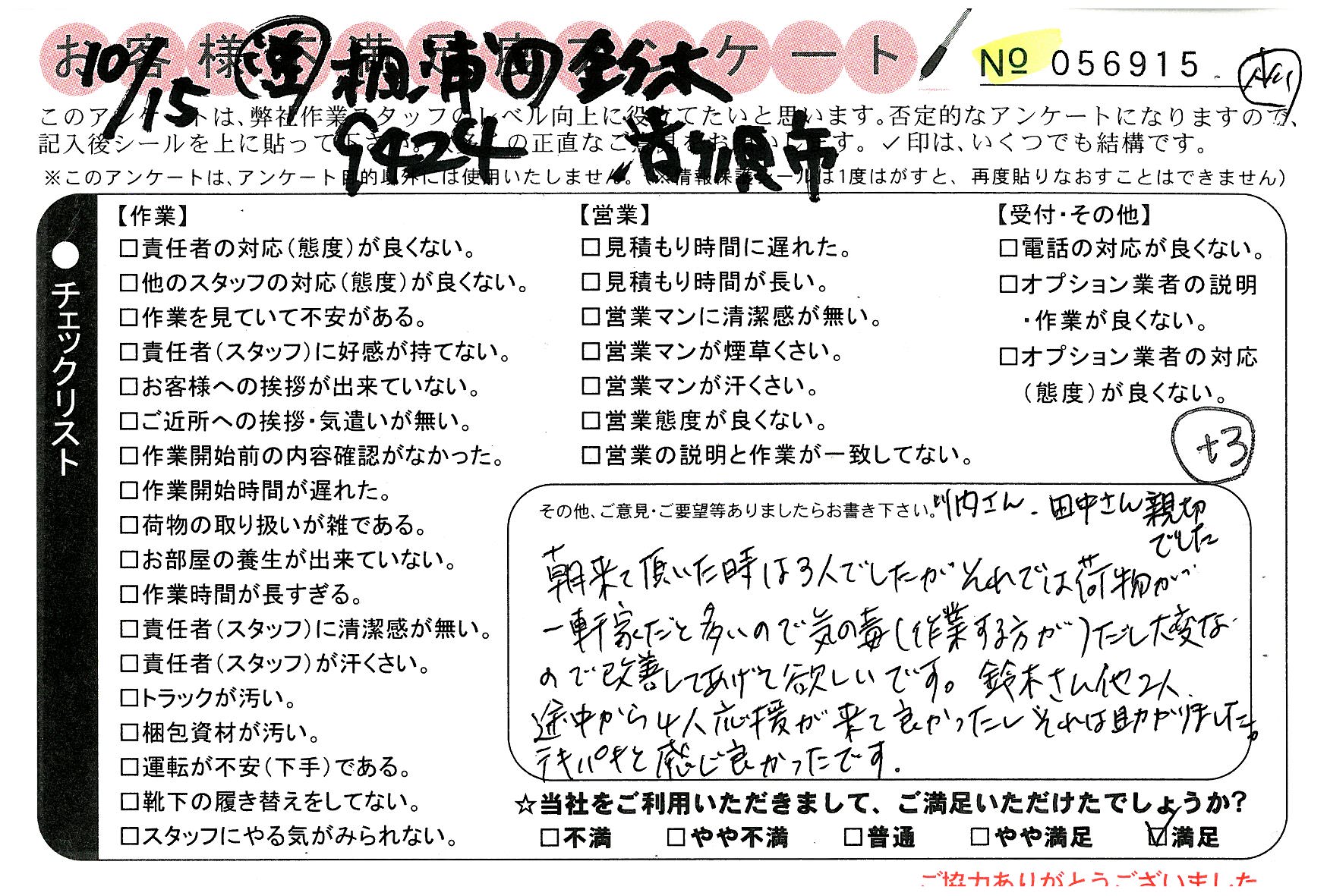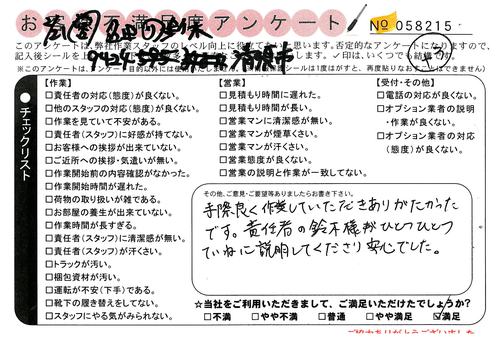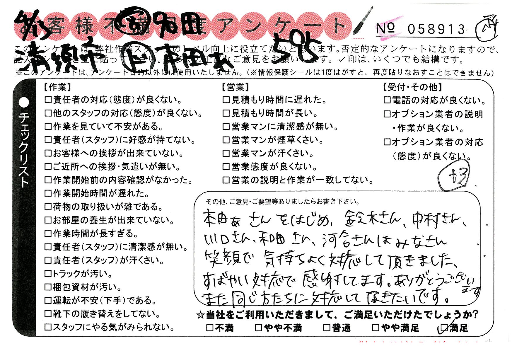 引越一番でお引越しをしていただいたお客様のうち、コメントいただいたアンケートを全て掲載しています。