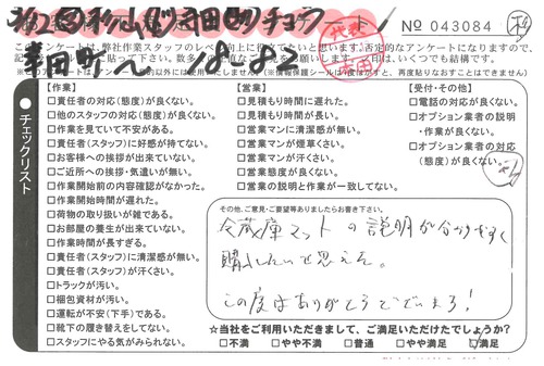 12/20 引越 営業:杉山 ドライバー:杉浦 スタッフ:オウ* ベットの回収サービス(有料)が大変助かりました。