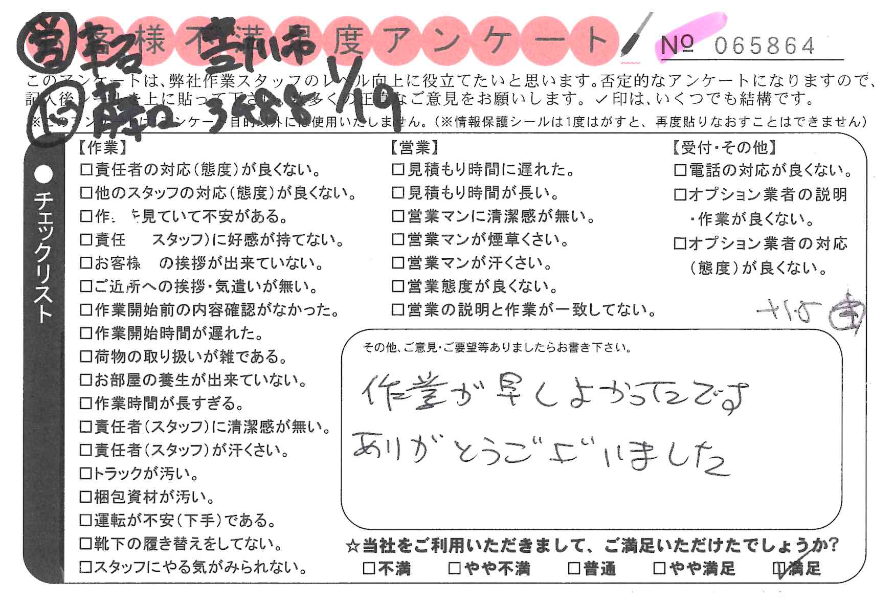 引越一番でお引越しをしていただいたお客様のうち、コメントいただいたアンケートを全て掲載しています。