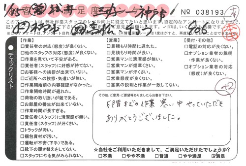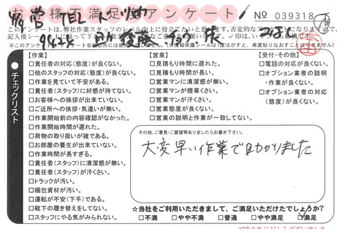 引越一番でお引越しをしていただいたお客様のうち、コメントいただいたアンケートを全て掲載しています。