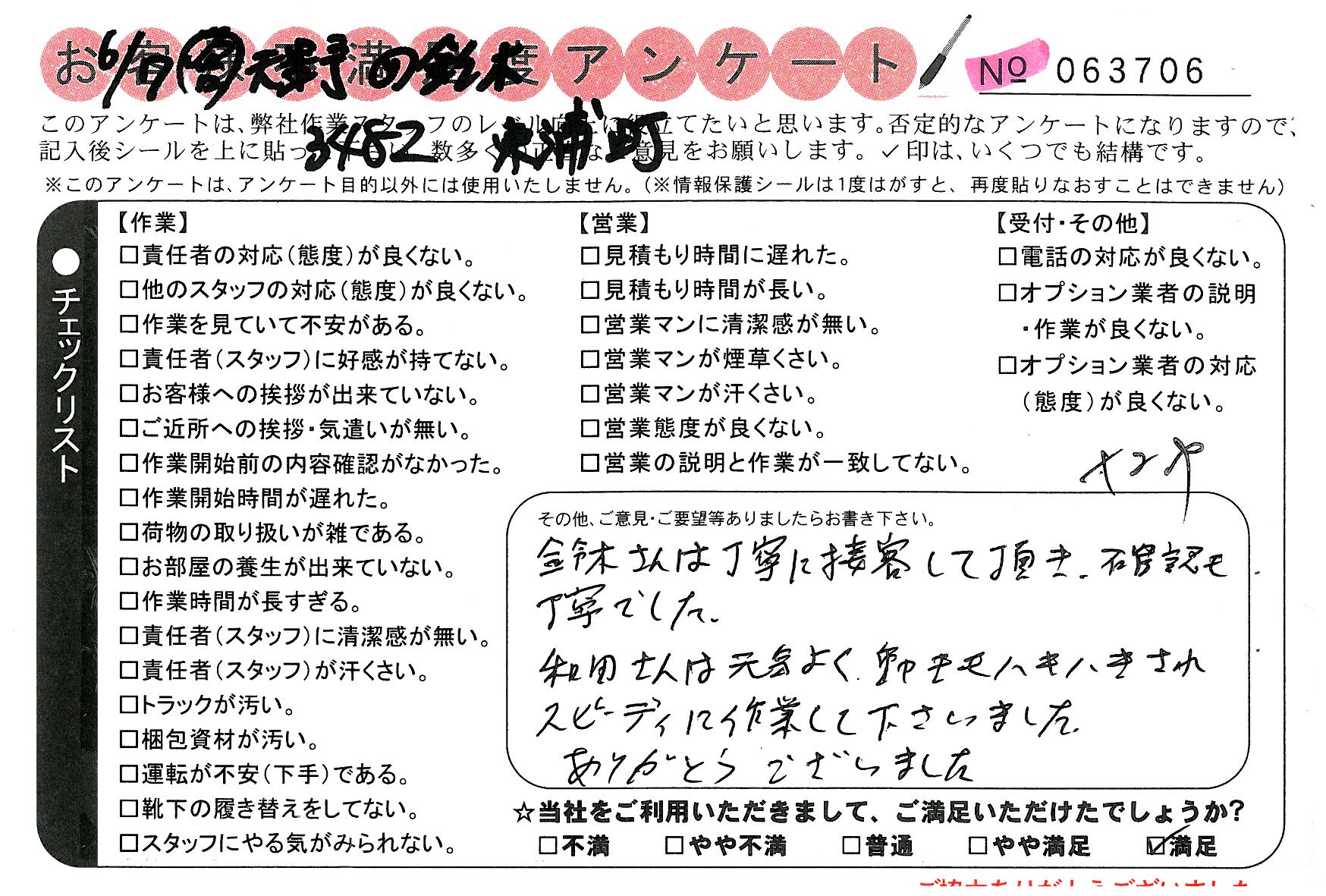 不満足度アンケートを行っている引越一番では、不評なアンケートも、好評なアンケートも全て掲載しています。