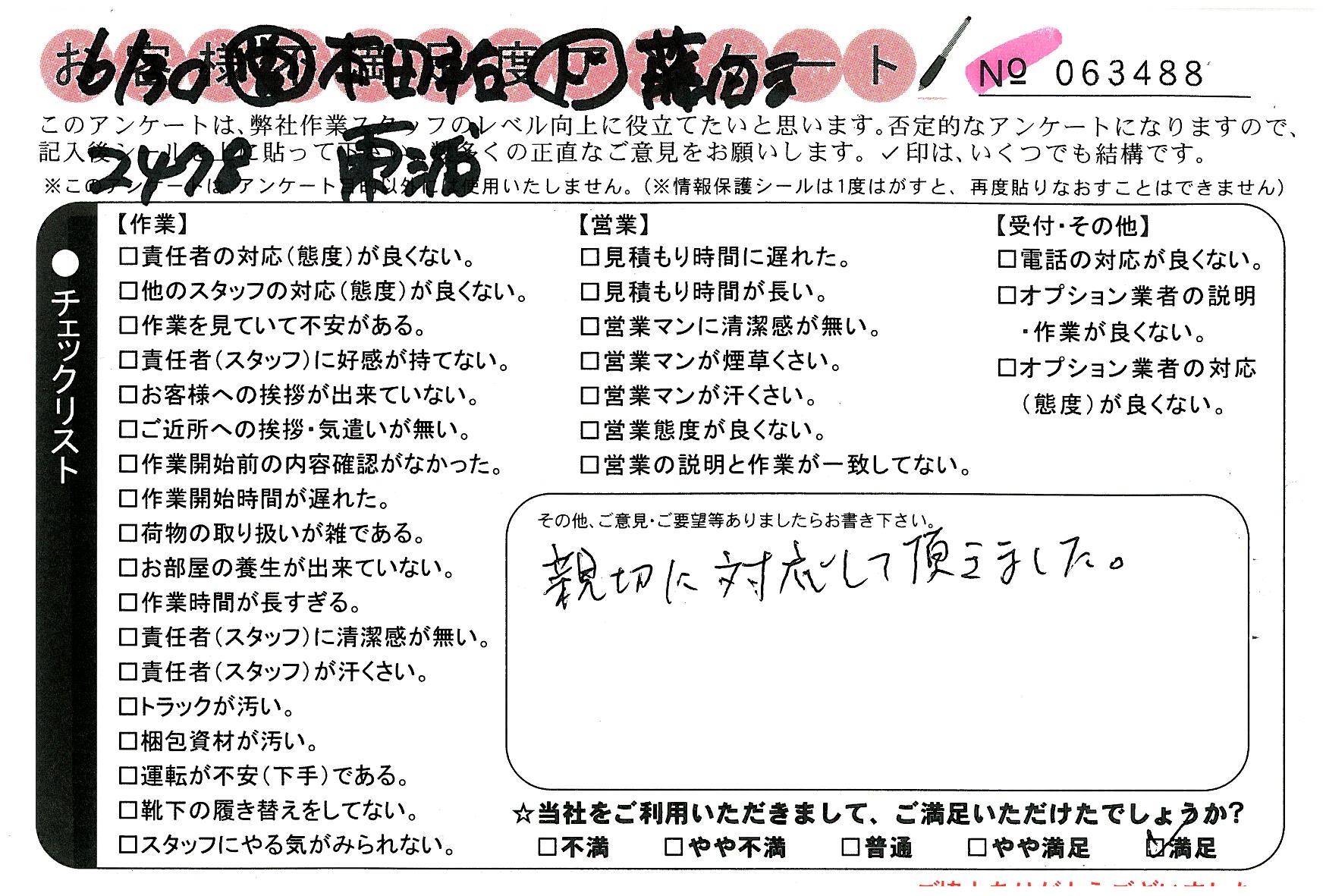 引越一番でお引越しをしていただいたお客様のうち、コメントいただいたアンケートを全て掲載しています。
