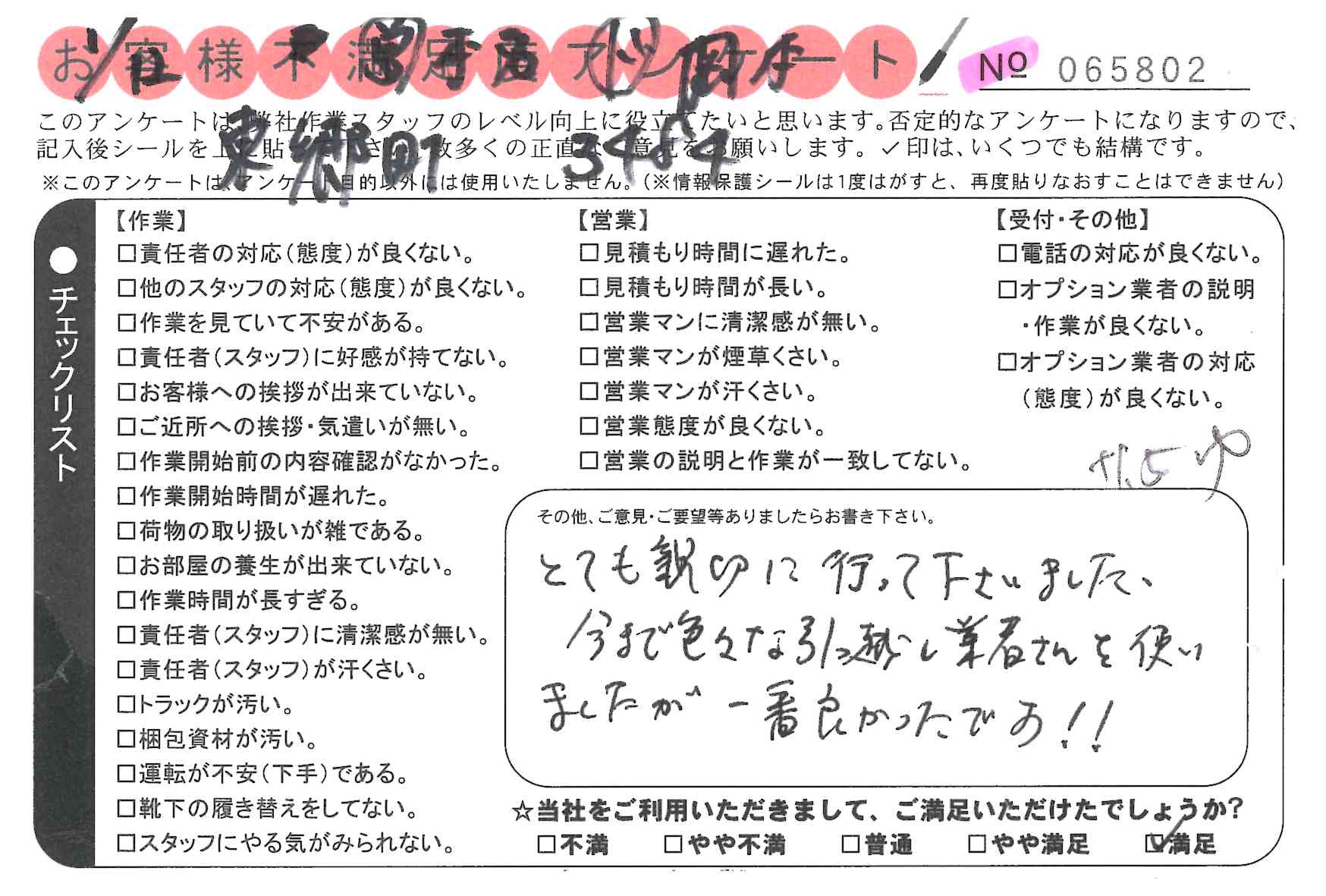 引越一番でお引越しをしていただいたお客様のうち、コメントいただいたアンケートを全て掲載しています。