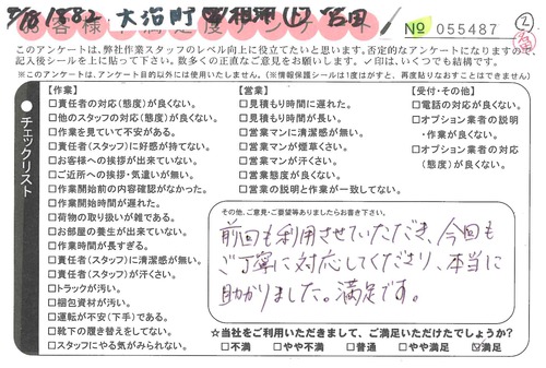 引越一番でお引越しをしていただいたお客様のうち、コメントいただいたアンケートを全て掲載しています。