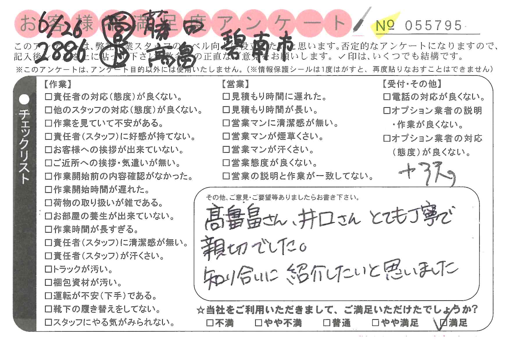 引越一番でお引越しをしていただいたお客様のうち、コメントいただいたアンケートを全て掲載しています。