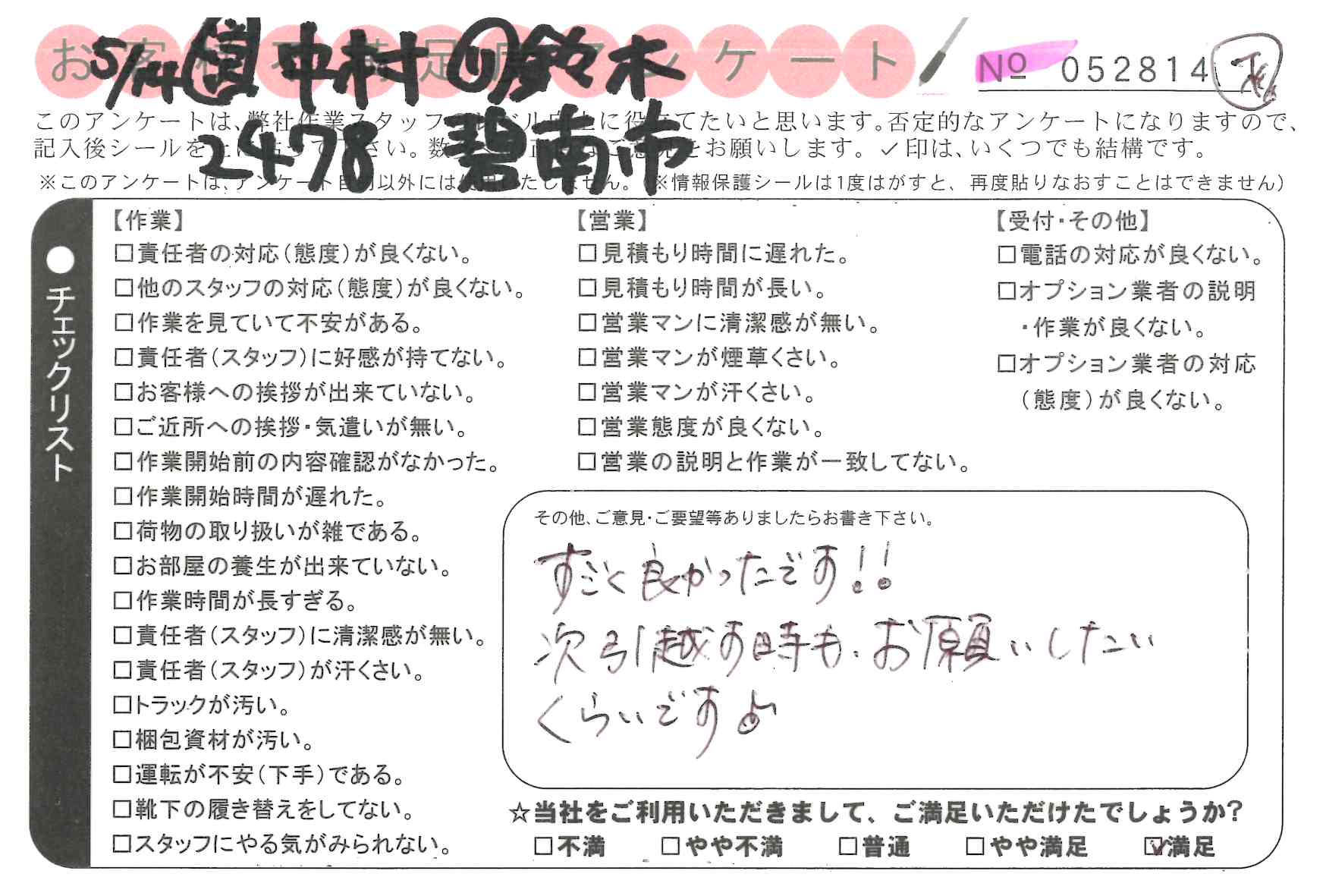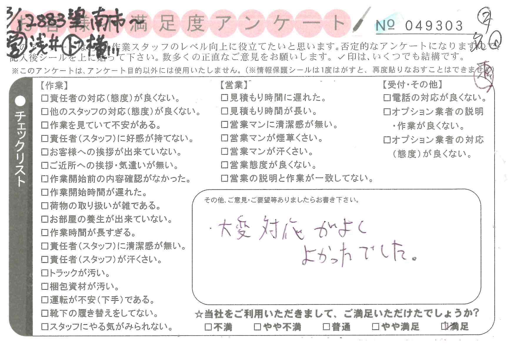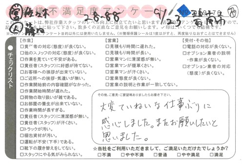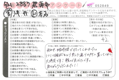 引越一番でお引越しをしていただいたお客様のうち、コメントいただいたアンケートを全て掲載しています。