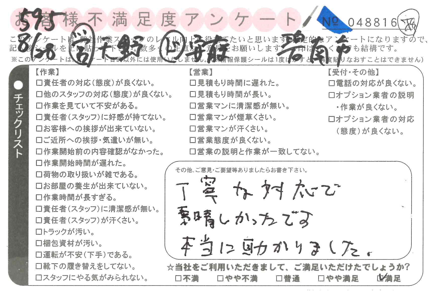 引越一番でお引越しをしていただいたお客様のうち、コメントいただいたアンケートを全て掲載しています。