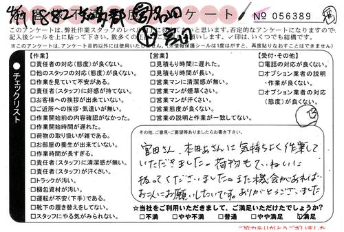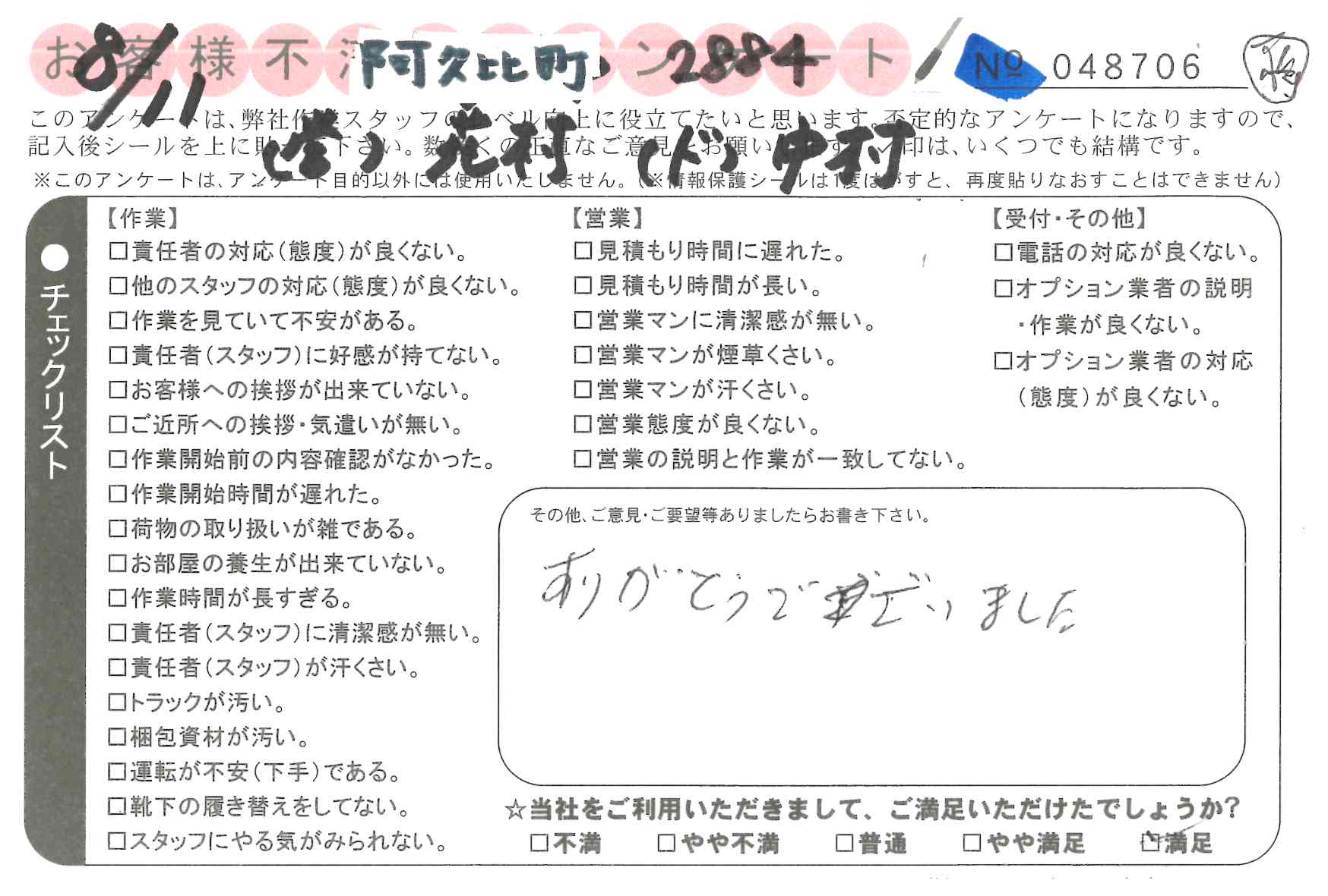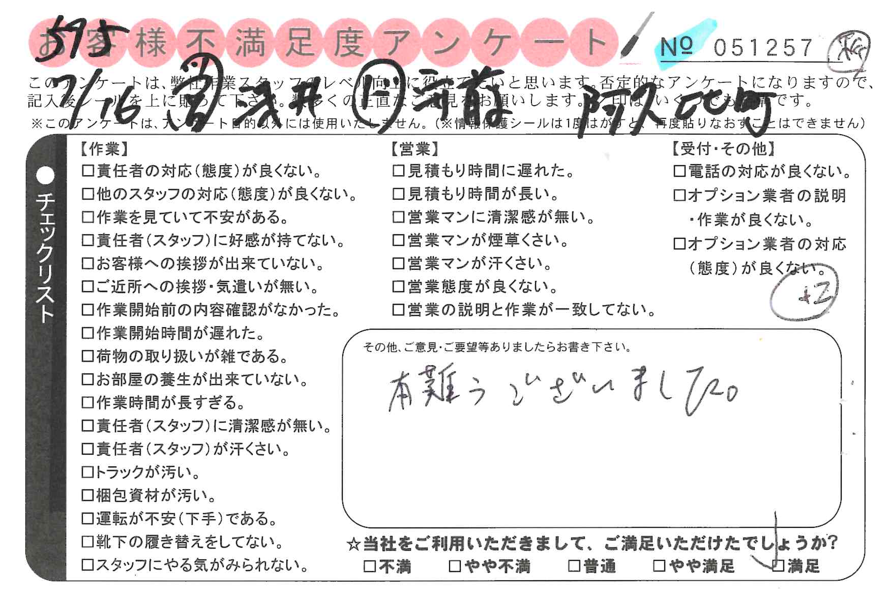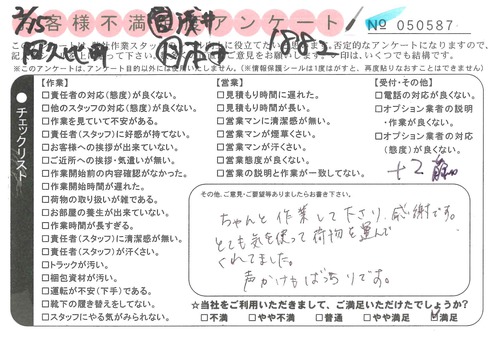 引越一番でお引越しをしていただいたお客様のうち、コメントいただいたアンケートを全て掲載しています。