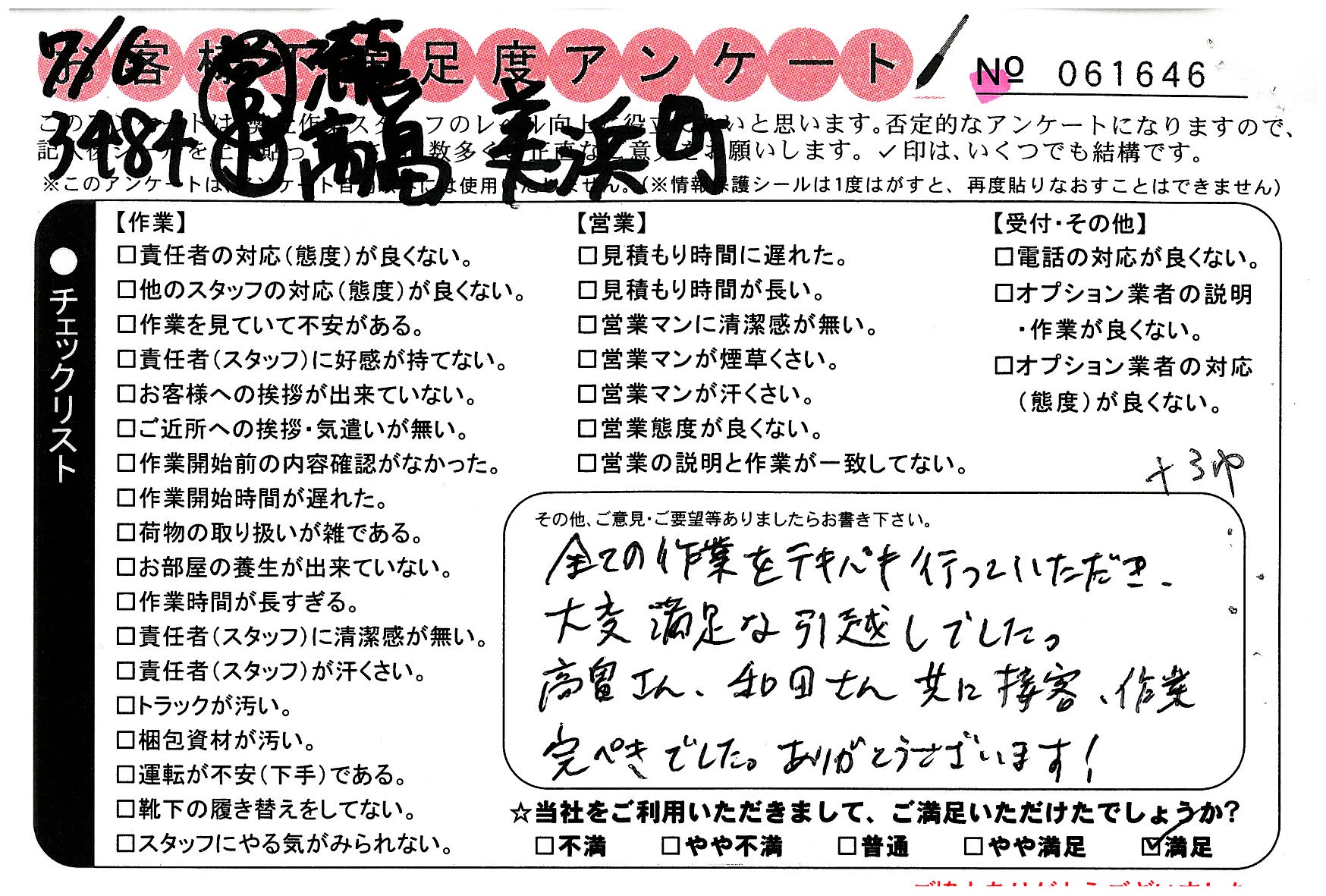 引越一番でお引越しをしていただいたお客様のうち、コメントいただいたアンケートを全て掲載しています。