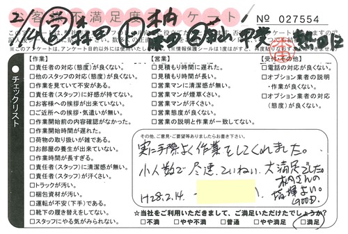 2/15 引越 営業:杉山 ドライバー:本名 スタッフ:酒井・岡田