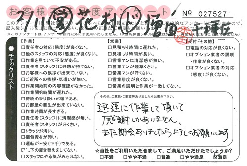 引越一番でお引越しをしていただいたお客様のうち、コメントいただいたアンケートを全て掲載しています。