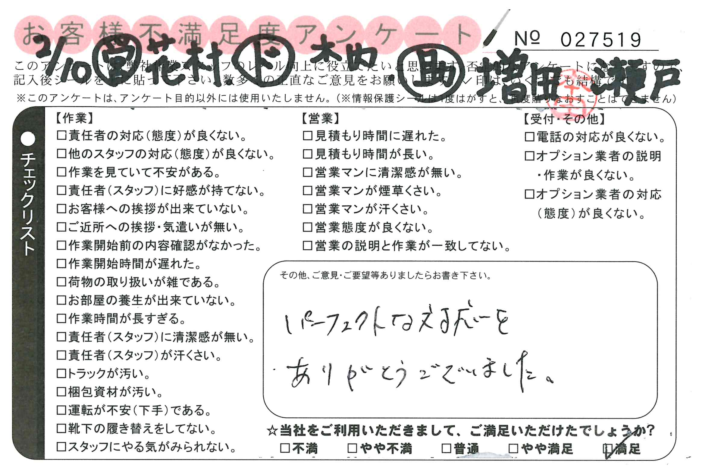 引越一番でお引越しをしていただいたお客様のうち、コメントいただいたアンケートを全て掲載しています。