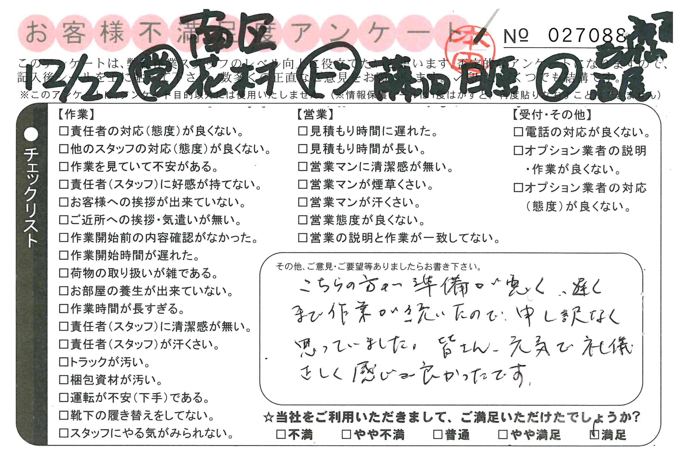 12/22 引越 営業:花村 ドライバー:高崎 スタッフ:河合・興