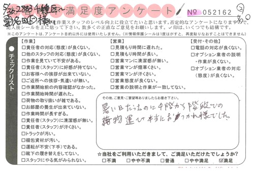 引越一番でお引越しをしていただいたお客様のうち、コメントいただいたアンケートを全て掲載しています。
