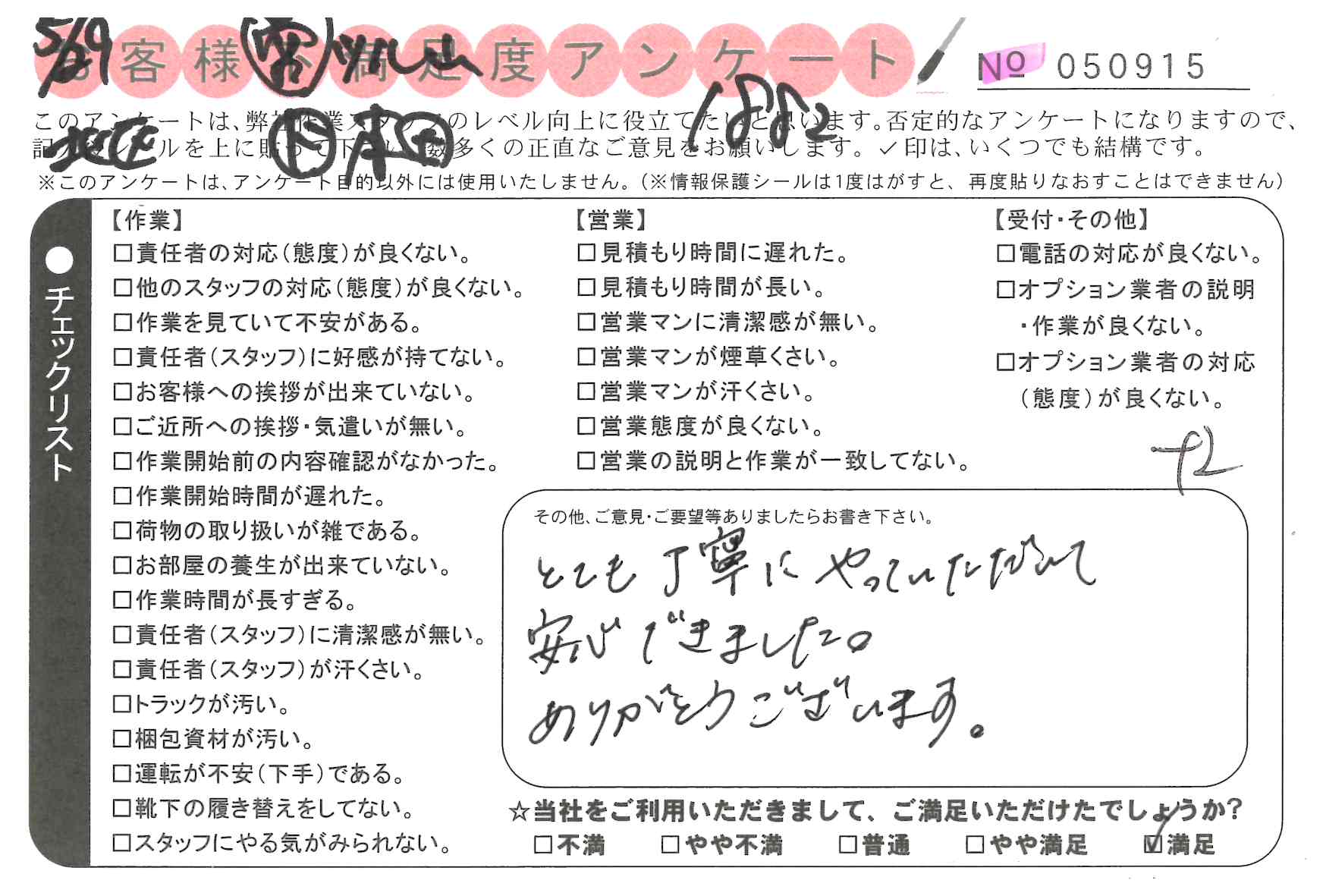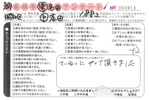 引越一番でお引越しをしていただいたお客様のうち、コメントいただいたアンケートを全て掲載しています。