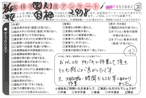 引越一番でお引越しをしていただいたお客様のうち、コメントいただいたアンケートを全て掲載しています。