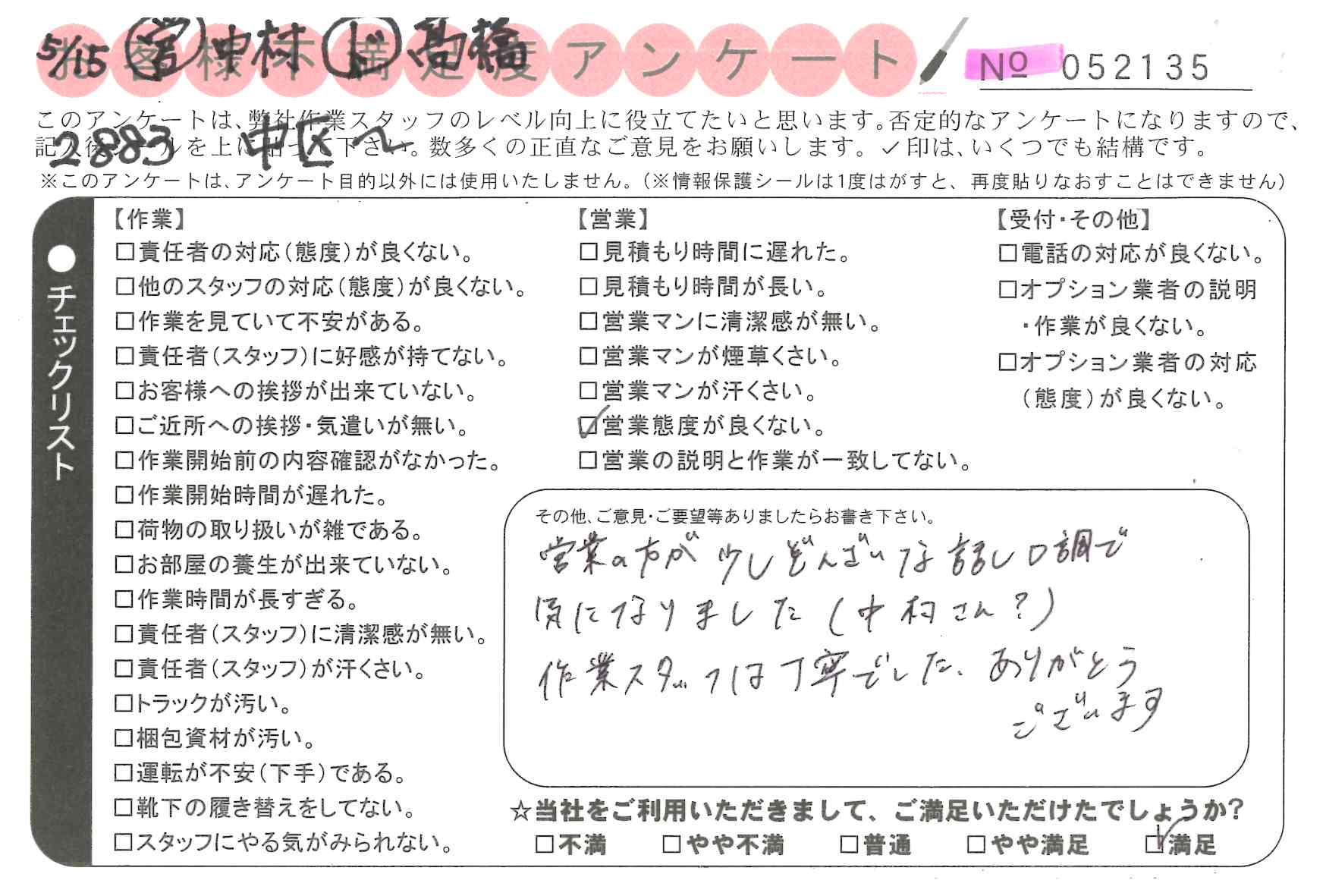 引越一番でお引越しをしていただいたお客様のうち、コメントいただいたアンケートを全て掲載しています。