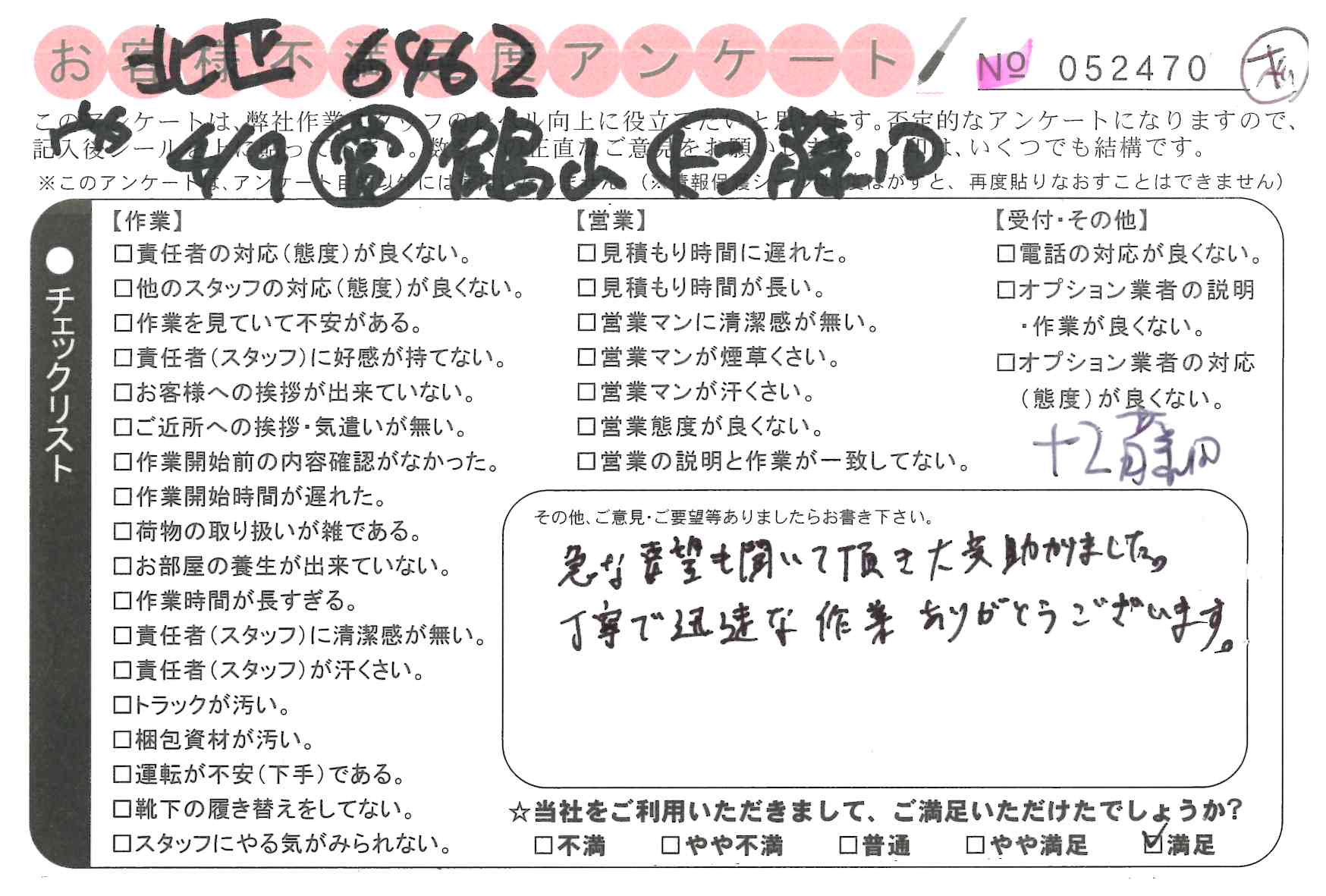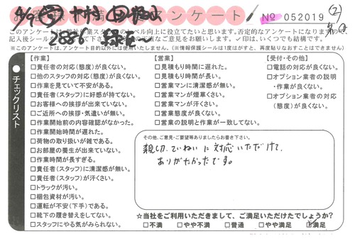 引越一番でお引越しをしていただいたお客様のうち、コメントいただいたアンケートを全て掲載しています。