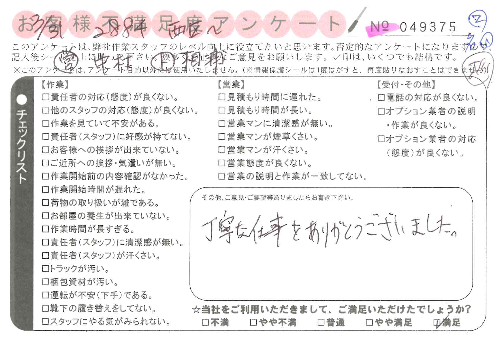 引越一番でお引越しをしていただいたお客様のうち、コメントいただいたアンケートを全て掲載しています。