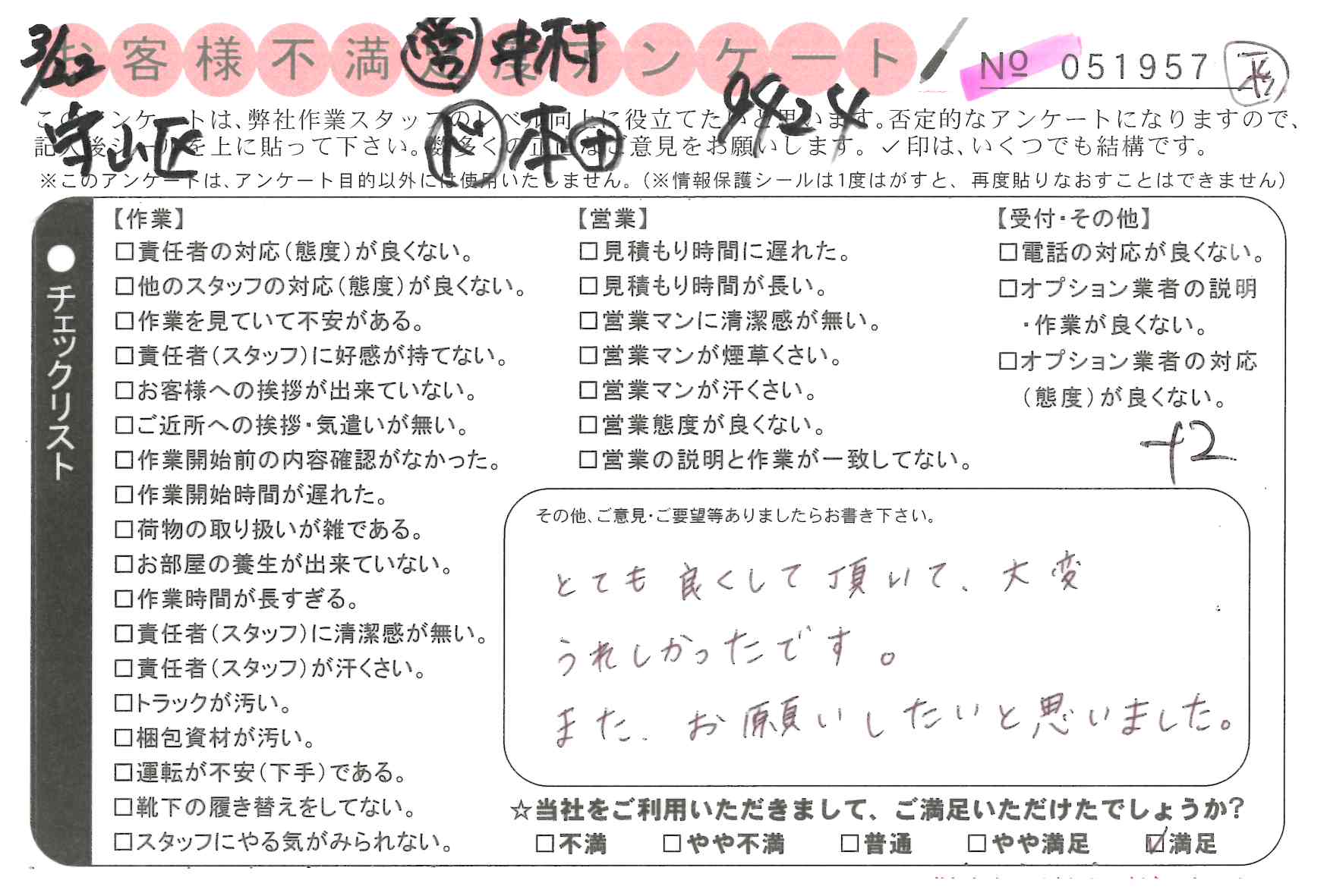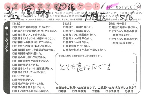 引越一番でお引越しをしていただいたお客様のうち、コメントいただいたアンケートを全て掲載しています。