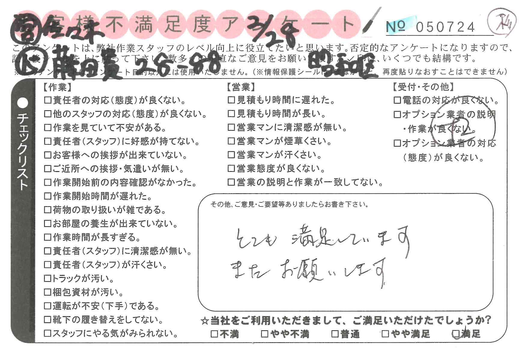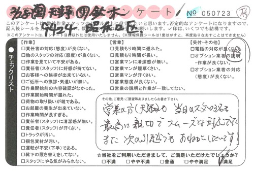 引越一番でお引越しをしていただいたお客様のうち、コメントいただいたアンケートを全て掲載しています。