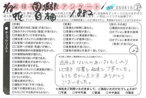 引越一番でお引越しをしていただいたお客様のうち、コメントいただいたアンケートを全て掲載しています。