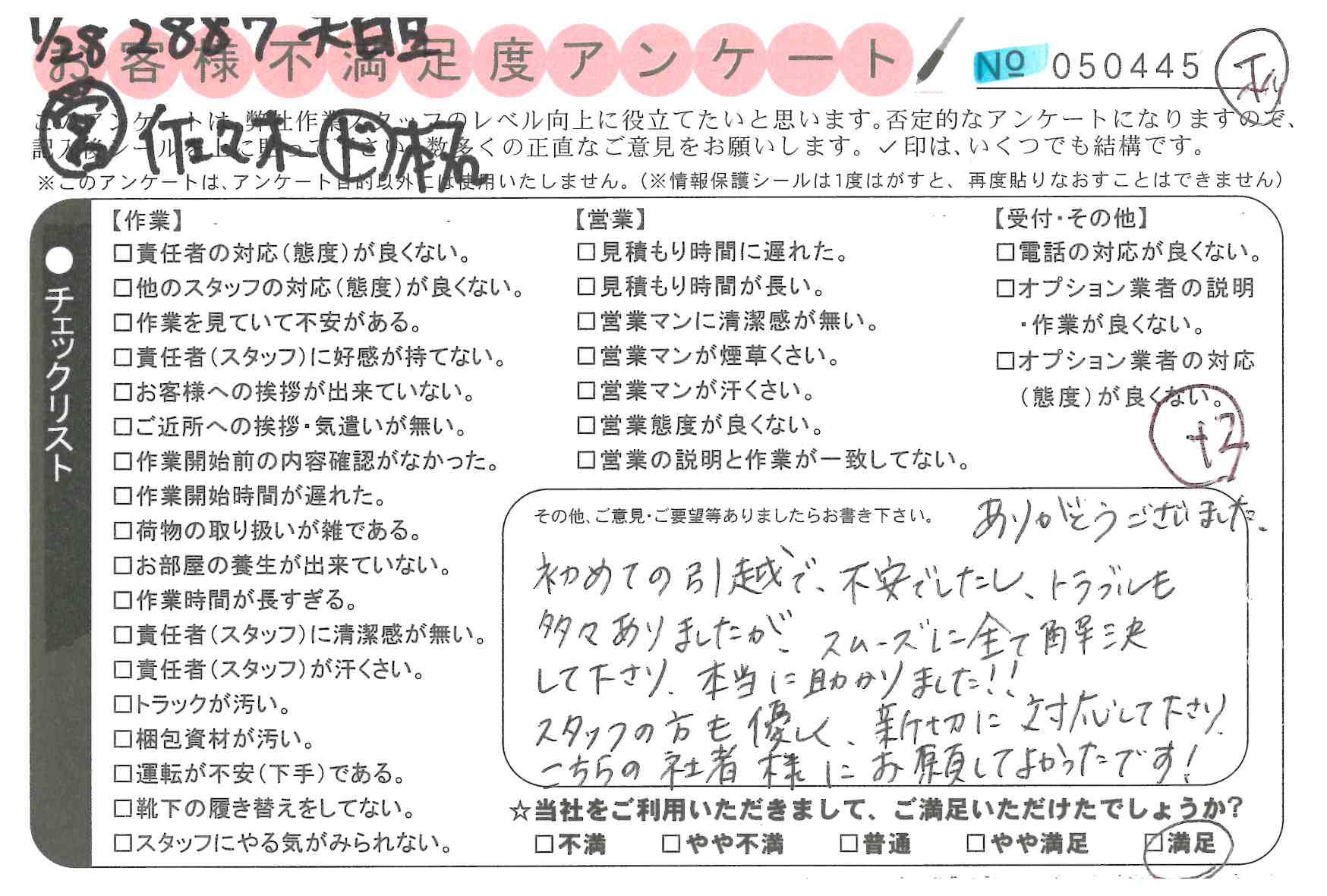 引越一番でお引越しをしていただいたお客様のうち、コメントいただいたアンケートを全て掲載しています。