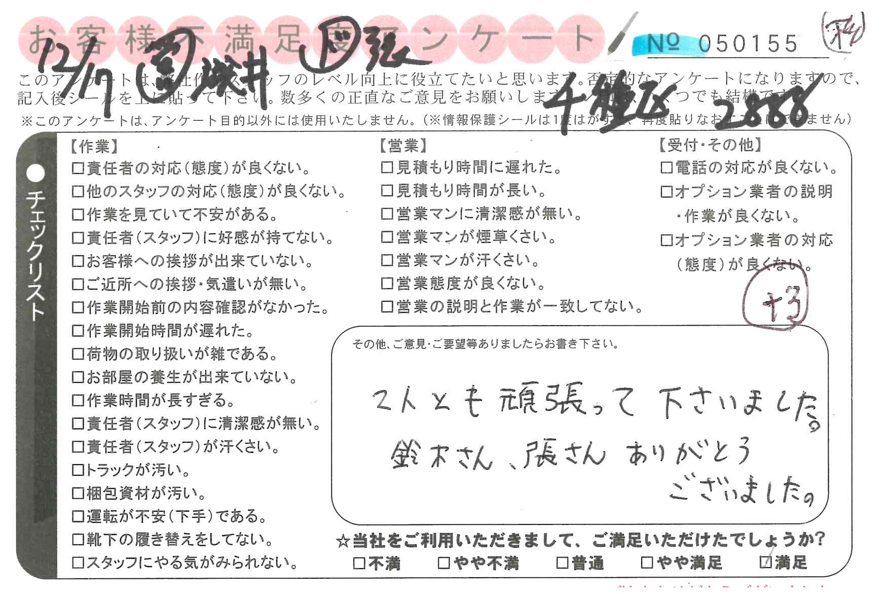 引越一番でお引越しをしていただいたお客様のうち、コメントいただいたアンケートを全て掲載しています。