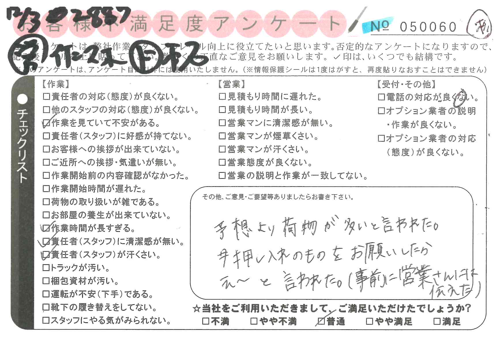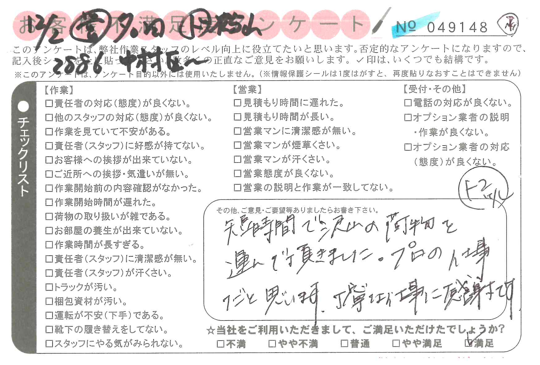 引越一番でお引越しをしていただいたお客様のうち、コメントいただいたアンケートを全て掲載しています。