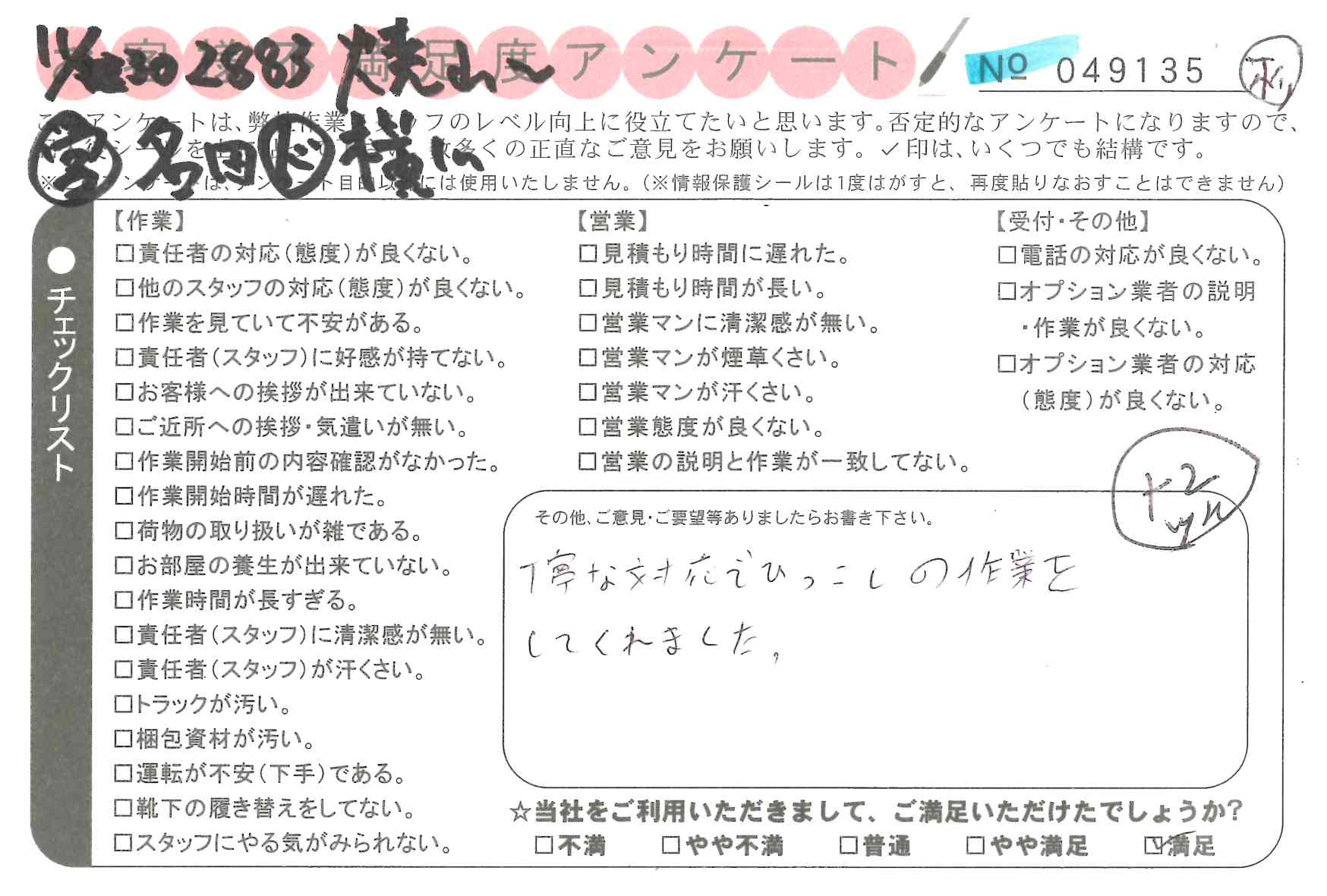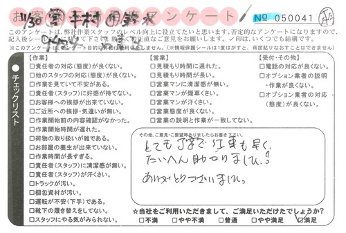 引越一番でお引越しをしていただいたお客様のうち、コメントいただいたアンケートを全て掲載しています。