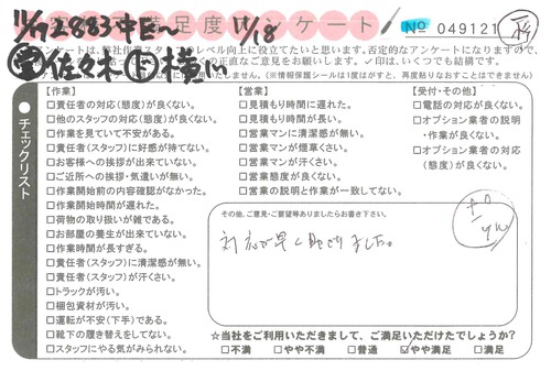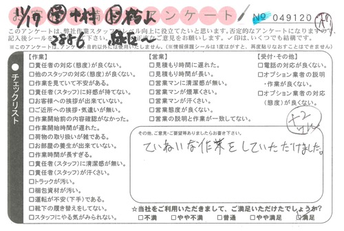 引越一番でお引越しをしていただいたお客様のうち、コメントいただいたアンケートを全て掲載しています。