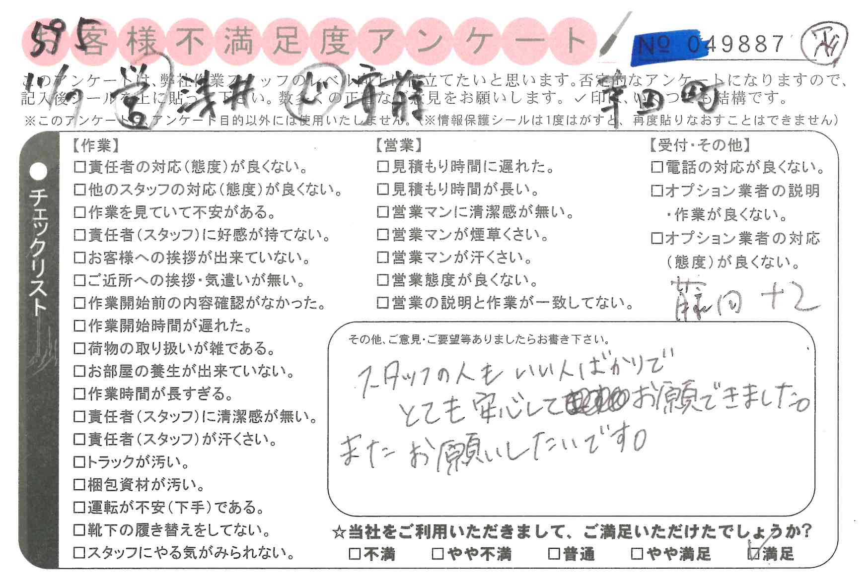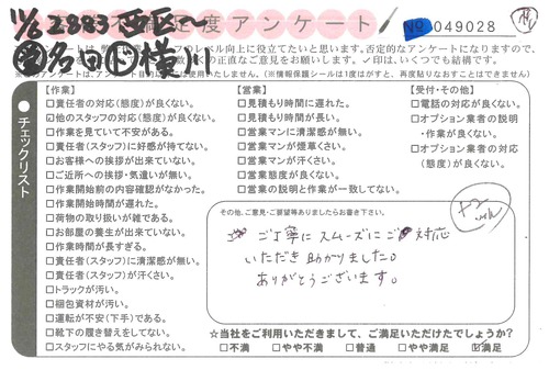 引越一番でお引越しをしていただいたお客様のうち、コメントいただいたアンケートを全て掲載しています。
